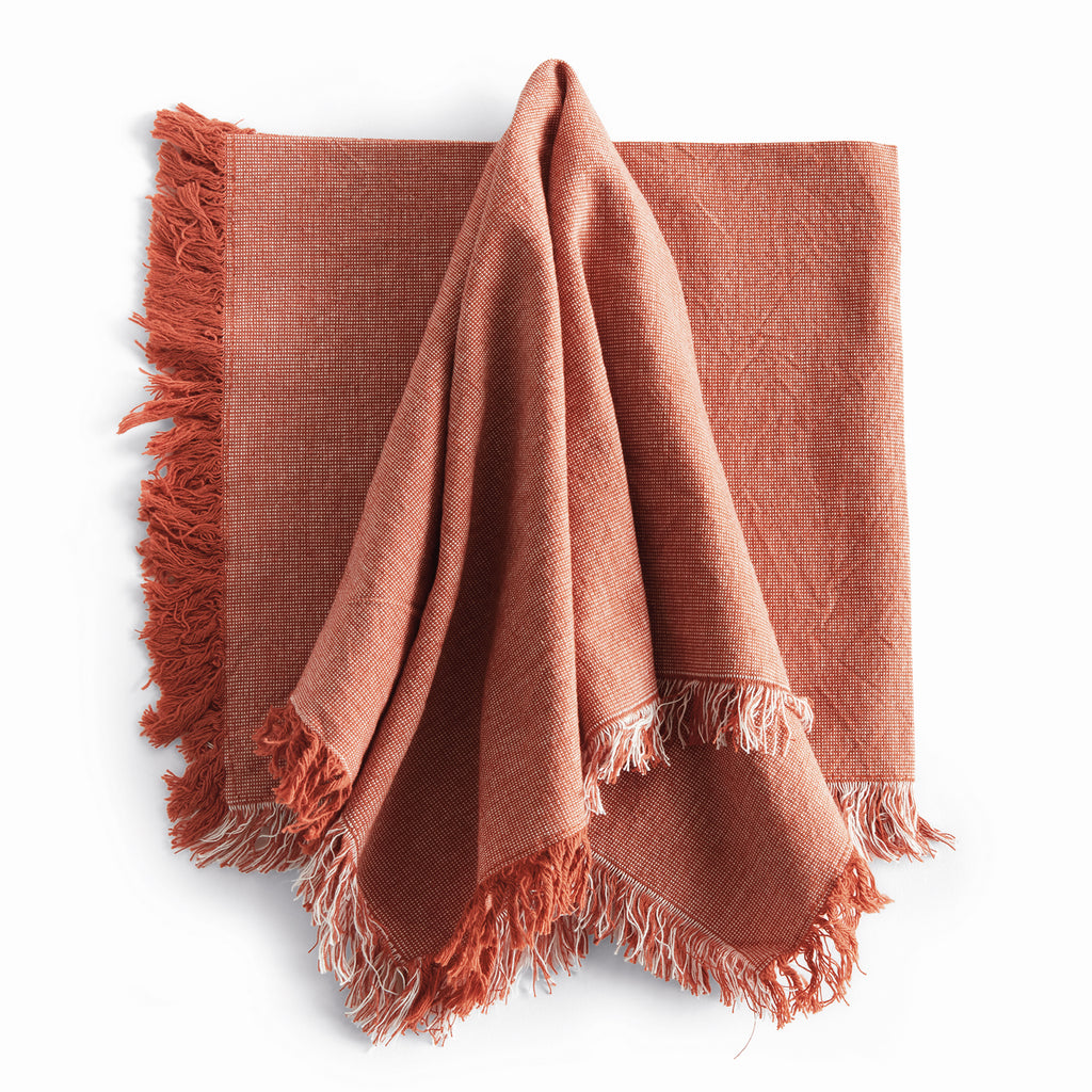 Bring a touch of softness to the table with this set of four cotton napkins. Beautiful in tone and texture, the warm rust pre-washed fabric adds a rich pop of color, and is made to coordinate with any tablescape.