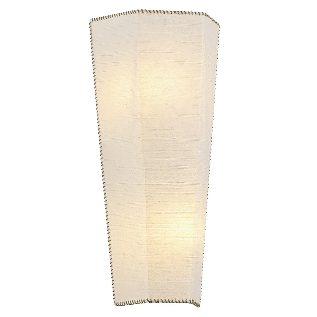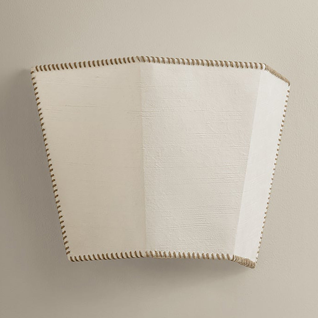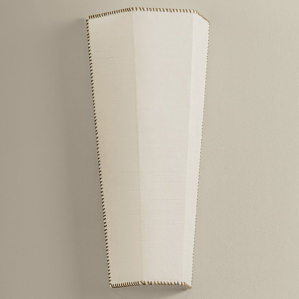 A natural extension of the Cy floor lamp, the Hudson Valley Lighitng Celmins family translates the warmth and texture of handmade materials into quiet, architectural forms. Crafted from handmade paper, the angular shades are trimmed in mushroom-hued whipstitching—a thoughtful detail that speaks to the artistry of their construction. Available as a 1- or 2-light wall sconce and a coordinating floor lamp, Celmins brings a soft sculptural quality to interiors.