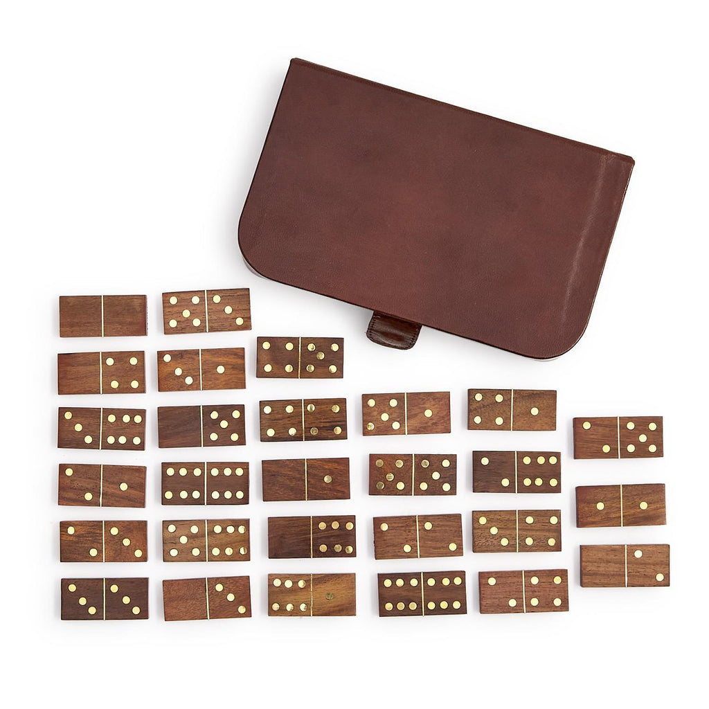 Elevate your game nights with our exquisitely crafted Chestnut Genuine Leather Domino Set. Handcrafted with attention to detail, this set features 28 wood domino pieces housed in luxurious genuine leather. The warm tones of chestnut and acacia wood, accented with brass details, make this set a stunning addition to any game room or den.