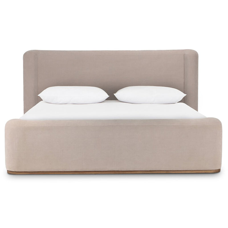 A transitional style to complement your collection, sheltered head and footboards shape a soft, contour-inspired silhouette, grounded by a plinth ash base. With clean lines and all-around cushioning, this upholstered bed brings an inviting look to the bedroom.