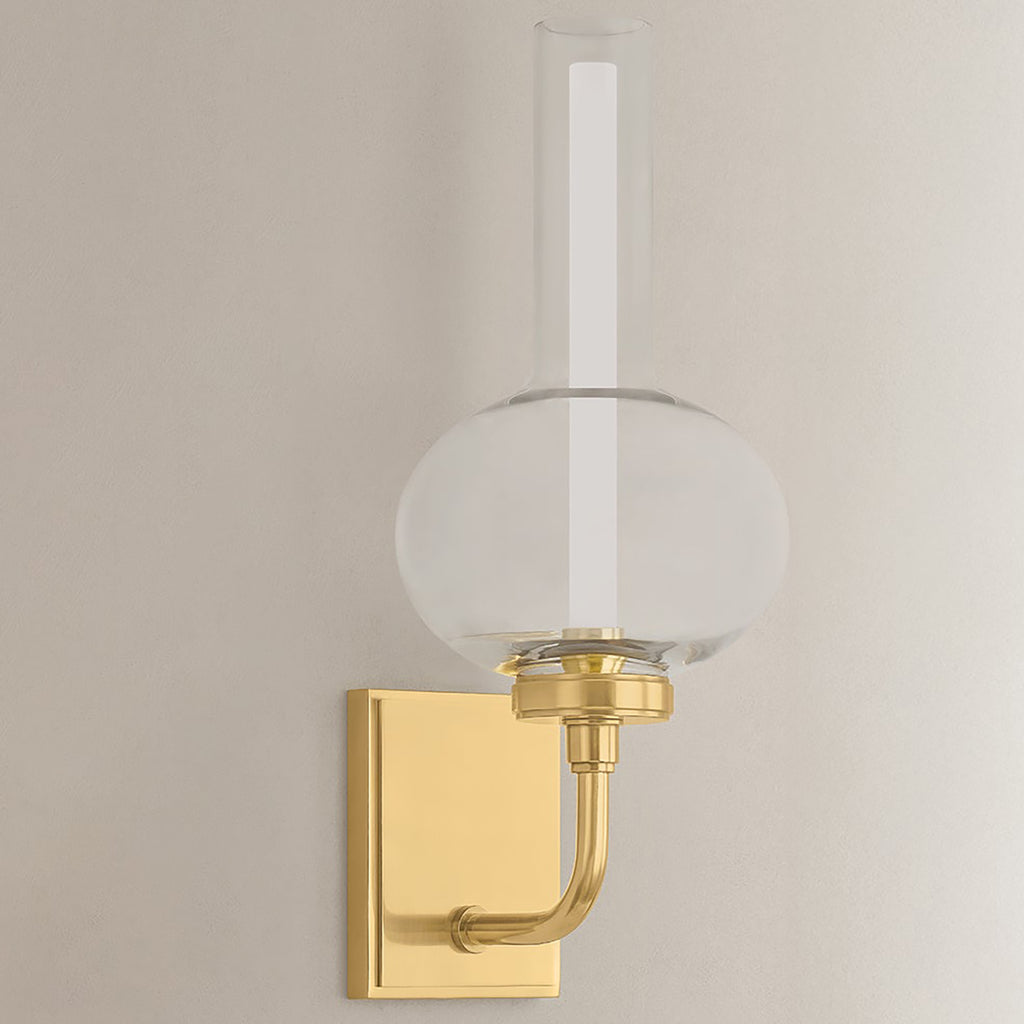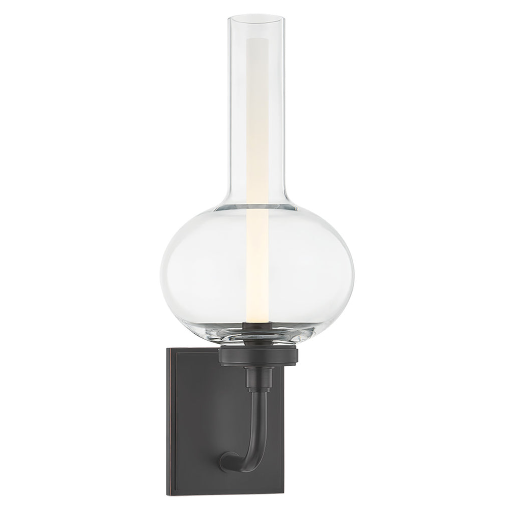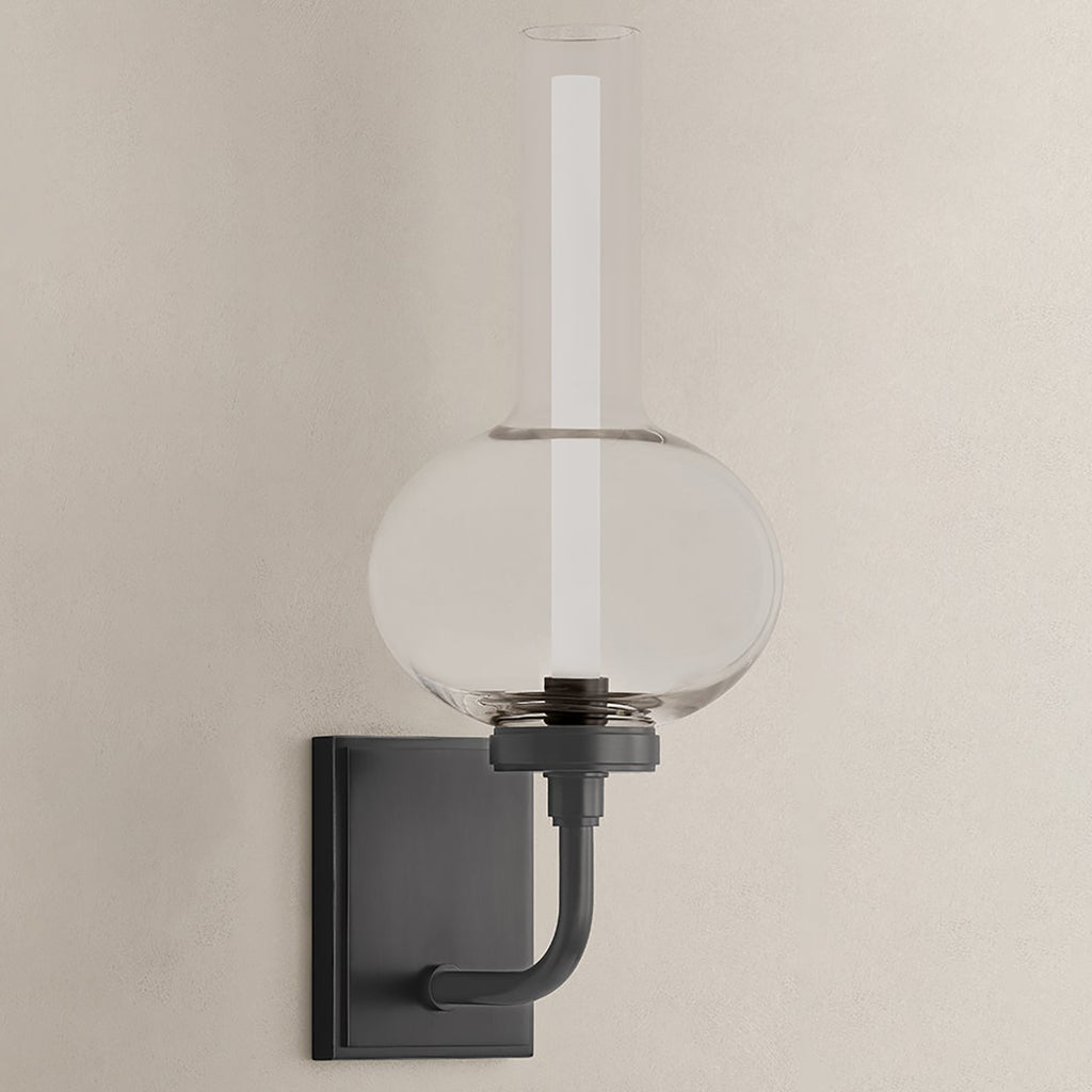 The Hudson Valley Lighting Rossman sconce is a modern interpretation of turn-of-the-century gas lamps. Where a flame once would have flickered, an LED light now illuminates this hurricane-style clear glass silhouette from within a solid acrylic cylinder. Finished with an Aged Brass or Dark Bronze candle holder, Rossman taps into vintage elegance while providing modern utility.