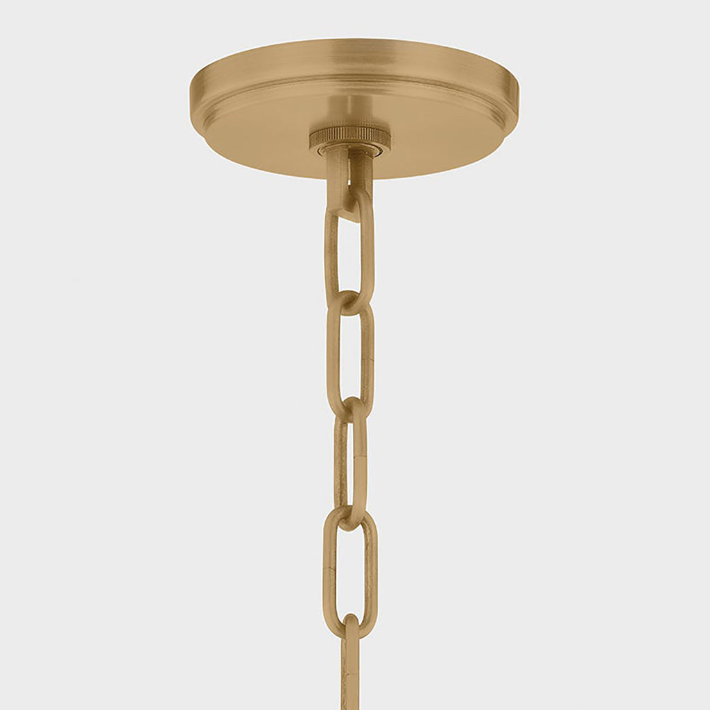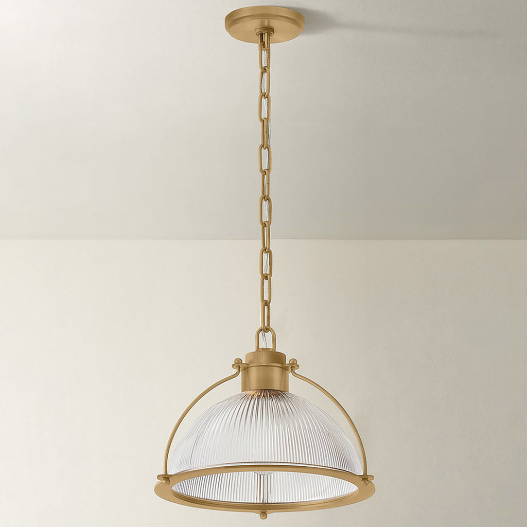 Inspired by classic RLM silhouettes, Lauren Liess x Troy Lighting Glint reimagines industrial design with character and vintage-inspired details. The ribbed Holophane glass shade adds texture while softly diffusing light. Three suspension arms work to create a clean, structural frame that emphasizes balance and craftsmanship. A Patina Brass finish enhances Glint’s retro aesthetic.