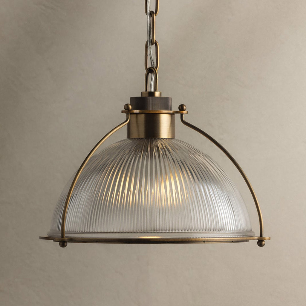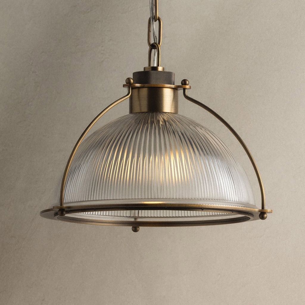 • Finish: Patina Brass, Clear Holophane
