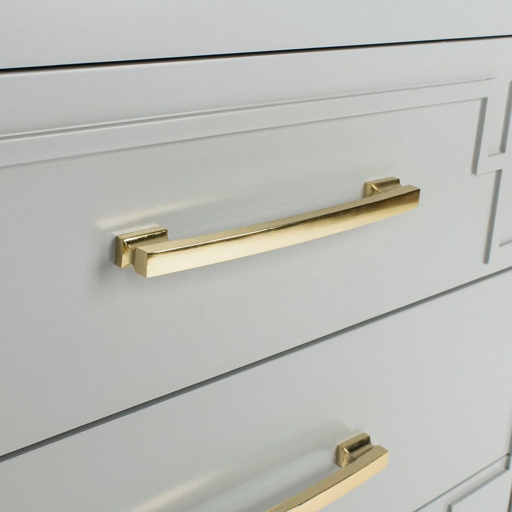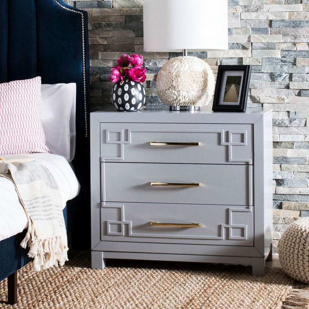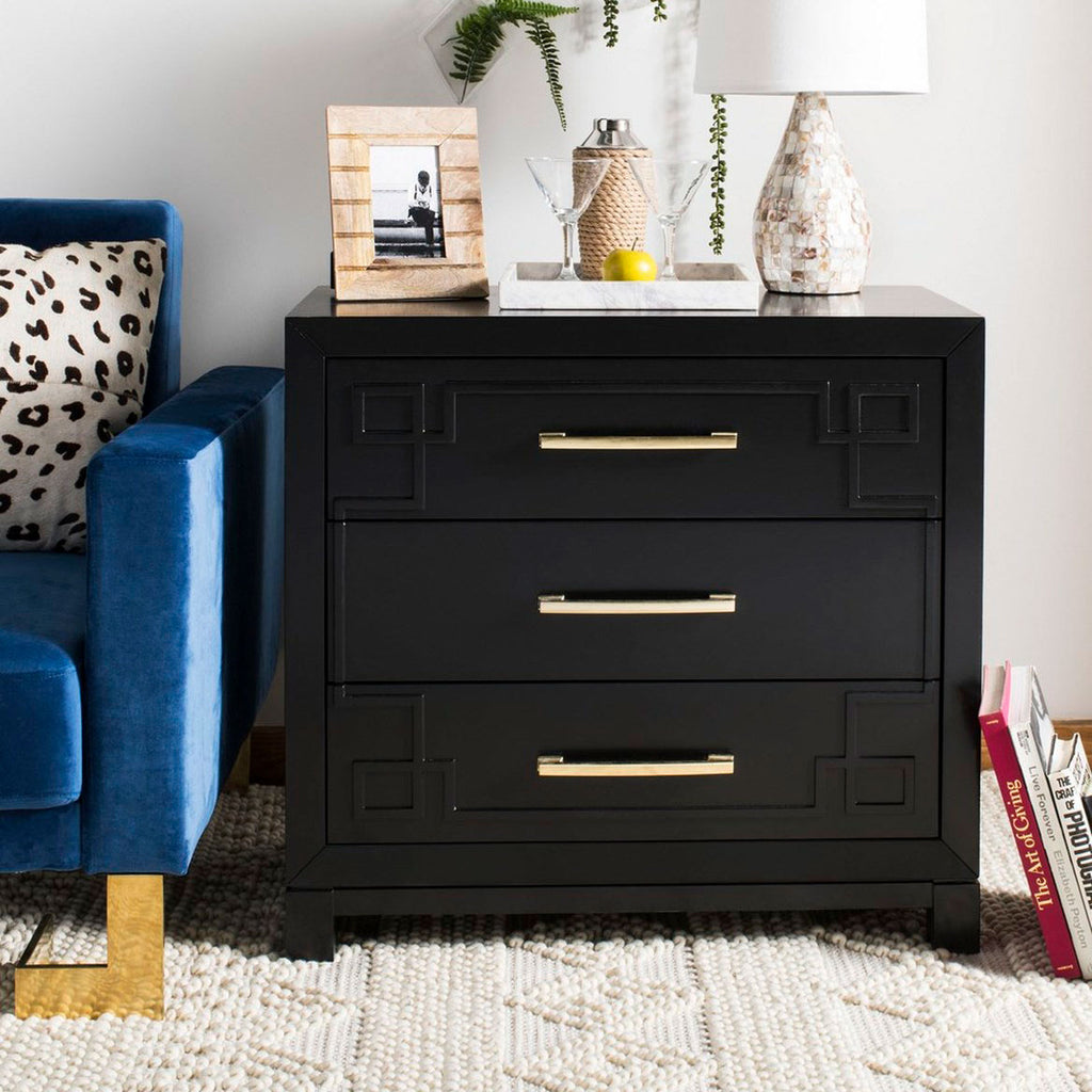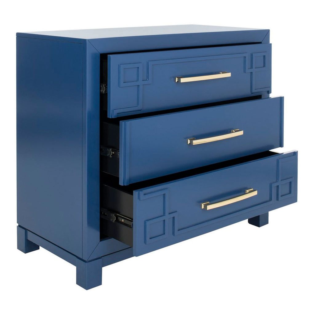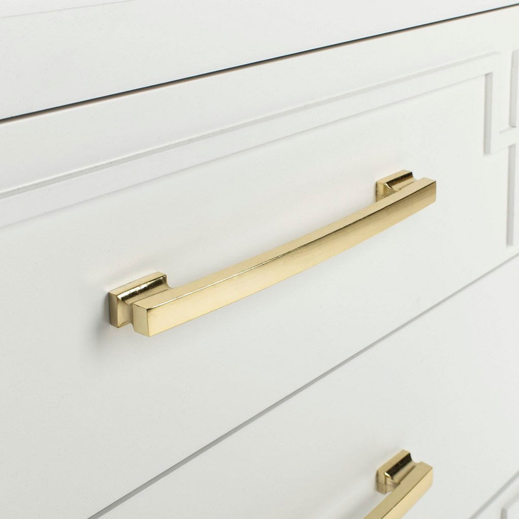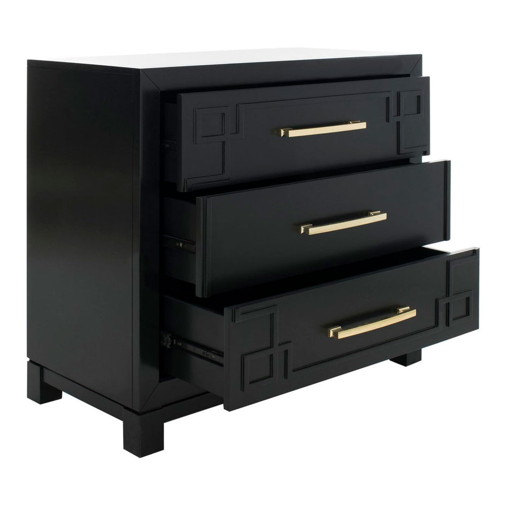 Inspired by Art Deco style, with this vibrant 3-drawer chest makes a bold statement in any bedroom or living room. Crafted with pine, it features striking carved details and a smooth white finish highlighted by deluxe gold-finished hardware. A modern heirloom.