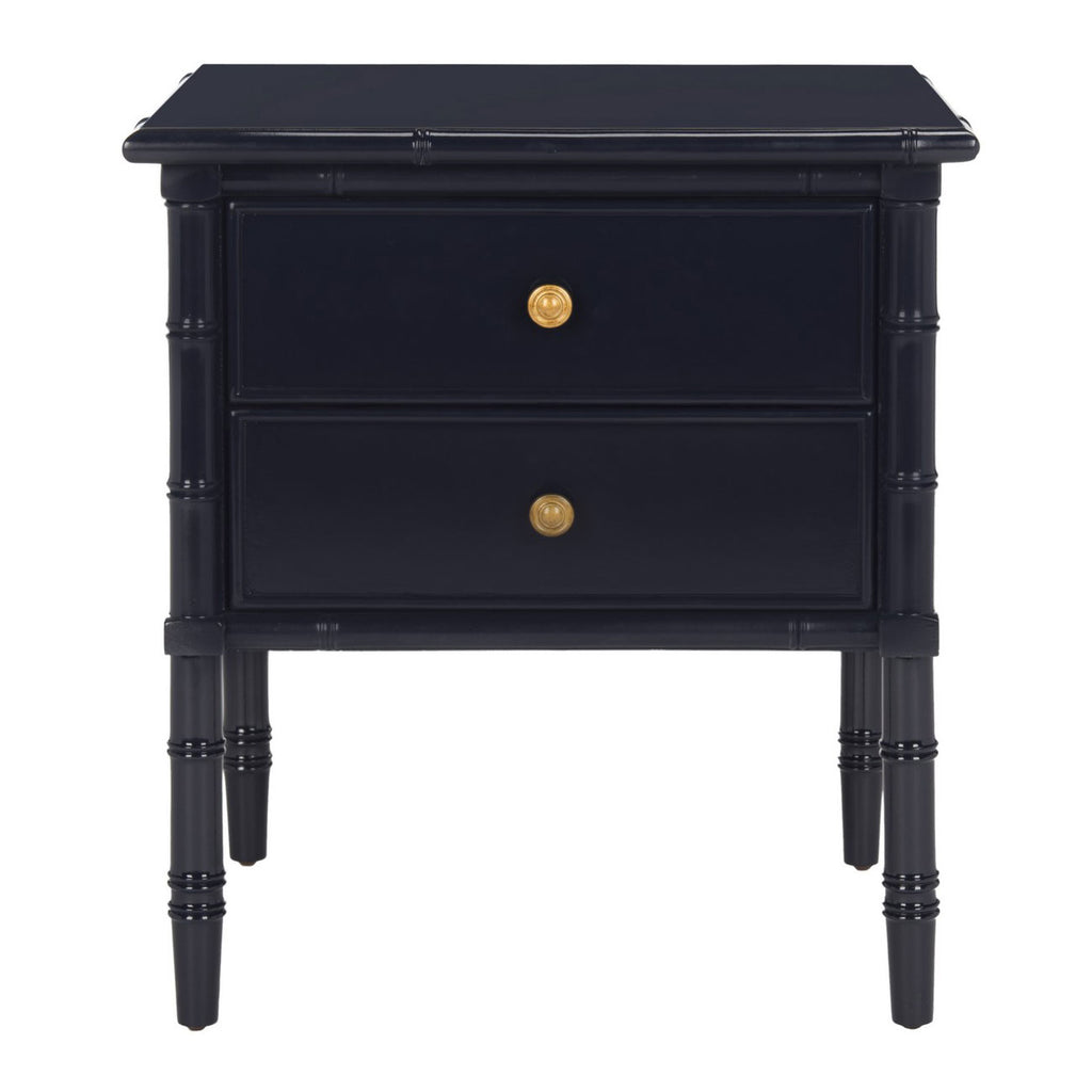 The calming shores of the Turks and Caicos inspired this elegant modern coastal 3-drawer nightstand. Crafted with stylish lacquered bamboo, its bold navy or white finish energizes any bedroom, while ample drawers offer generous storage. Designers use them in pairs.