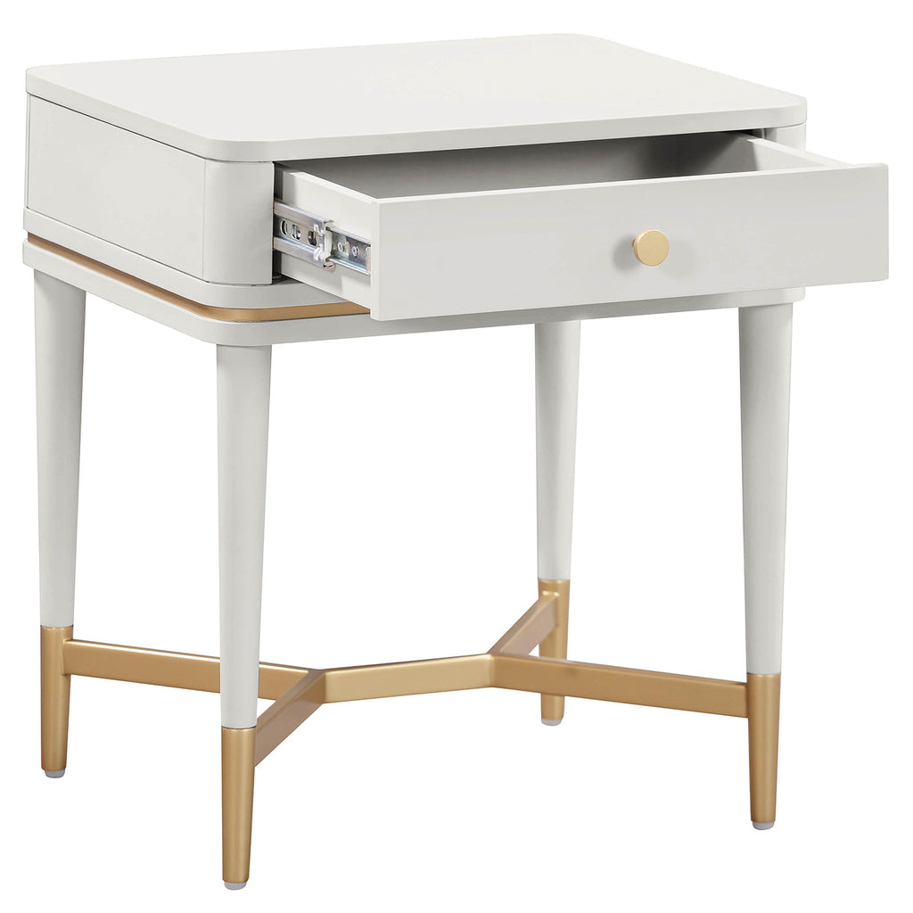 The TOV Furniture Julieta Nightstand is an Art Deco masterpiece. Stash your stuff in the soft-close drawer to keep your room looking hotel-chic. Available in three classic color options, accented with brass pulls and delicate inlay, the Julieta will effortlessly add drama and sophistication to any space.
