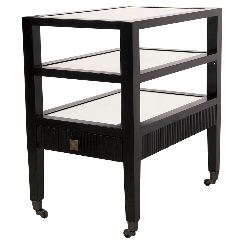 Spare and sophisticated, the traditional lines of this distressed black or distressed brown birch side table make it a natural fit for virtually any décor. Three mirrored surfaces provide multiple uses, and hand-carved accents on its base add a touch of adornment to its austerity.