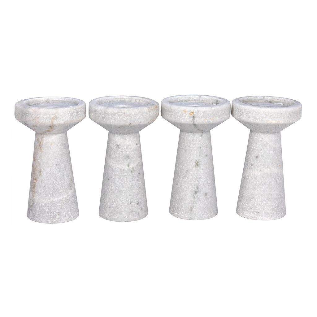 Take your everyday decor to the next level with this glamorous piece from Noir. Offering subtle nods to minimalist style, this effortlessly chic accent captivates atop a mantle. The  captivating Noir Aleka candleholders have been hand-carved of solid black or white marble. We include four in each set, and they are available in two sizes, each sized for use with pillar candles. No two pieces of stone, and therefore no candle stands, will be identical.