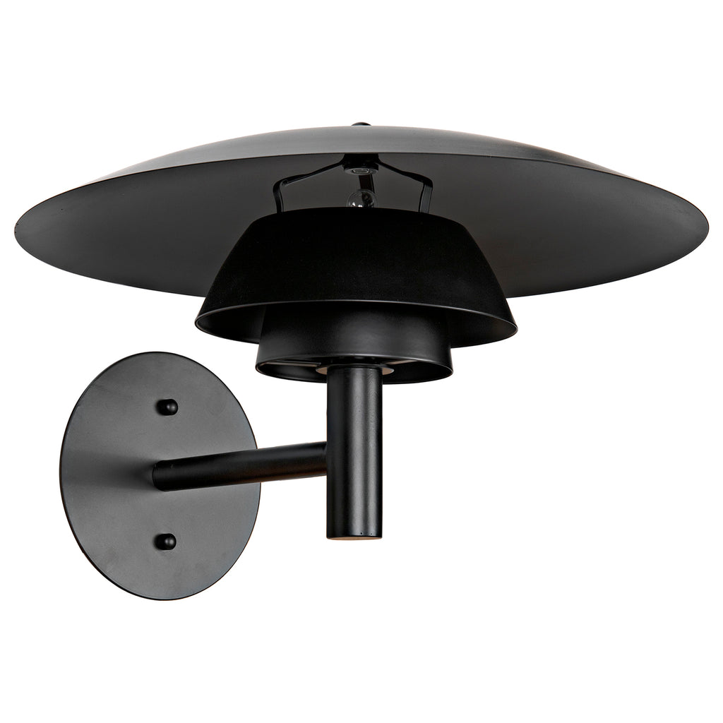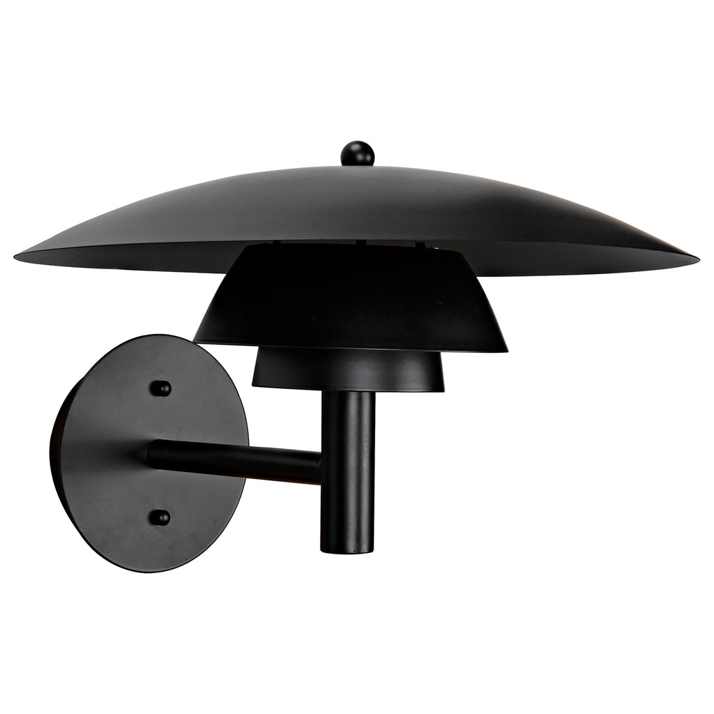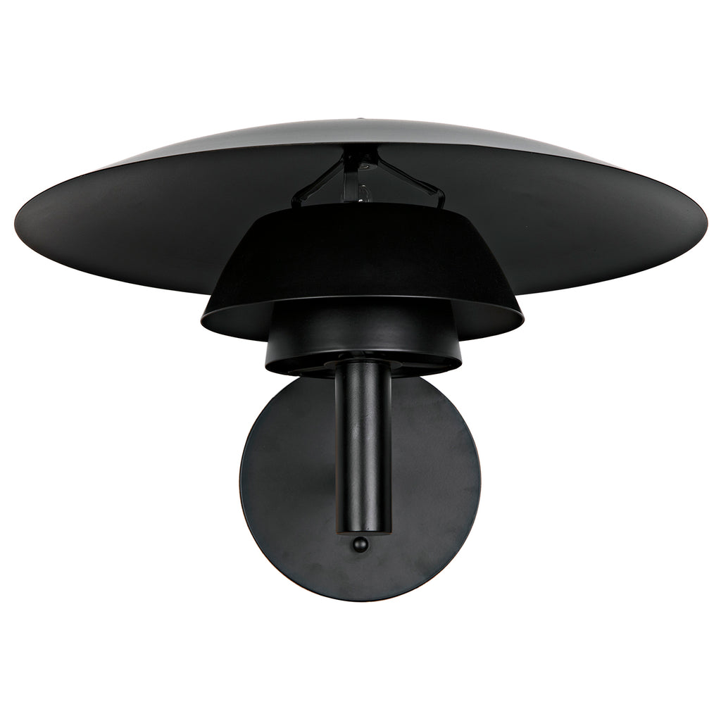 This elegant metal sconce has been expertly artisan crafted and finished in matte black. This lamp is a dazzling display of design virtuosity.
