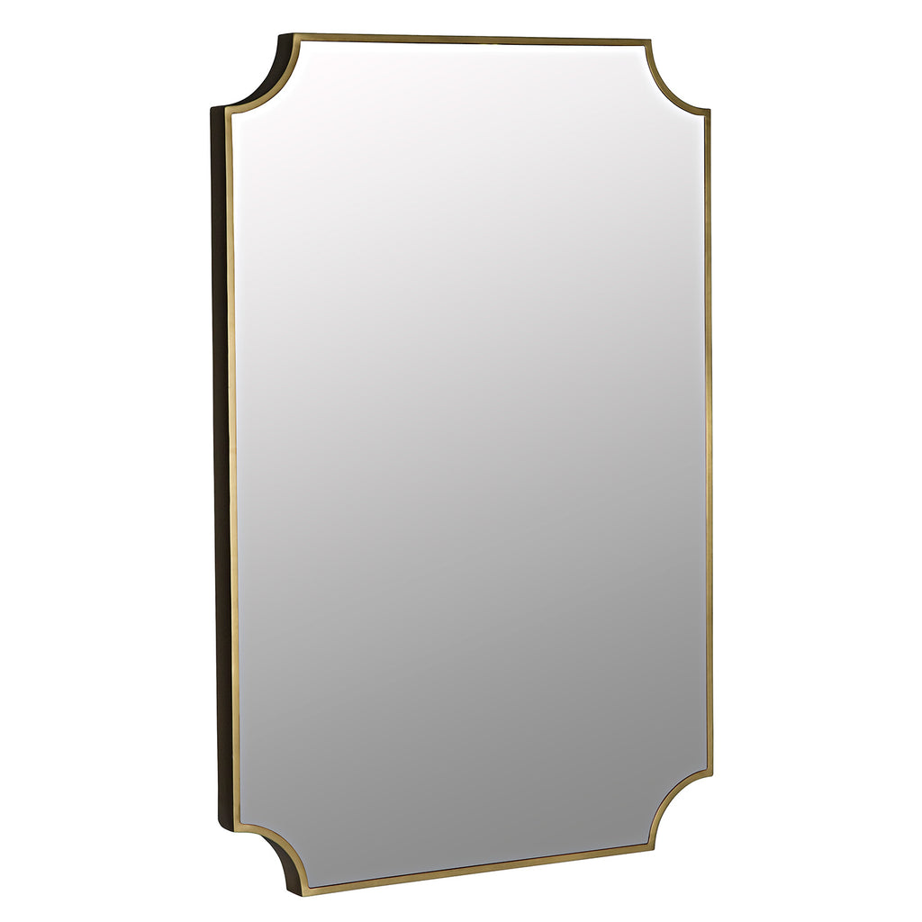 A fresh accent for a wall, this gorgeous Noir mirror reflects spaces with bold style. A must-have in any space, this mirror's unique frame catches the eye. The Noir Convexed wall mirror features a slim band of metal surrounds this polished wall mirror. The burnished antique brass finish of the frame warms the look slightly, keeping just on this side of austere.