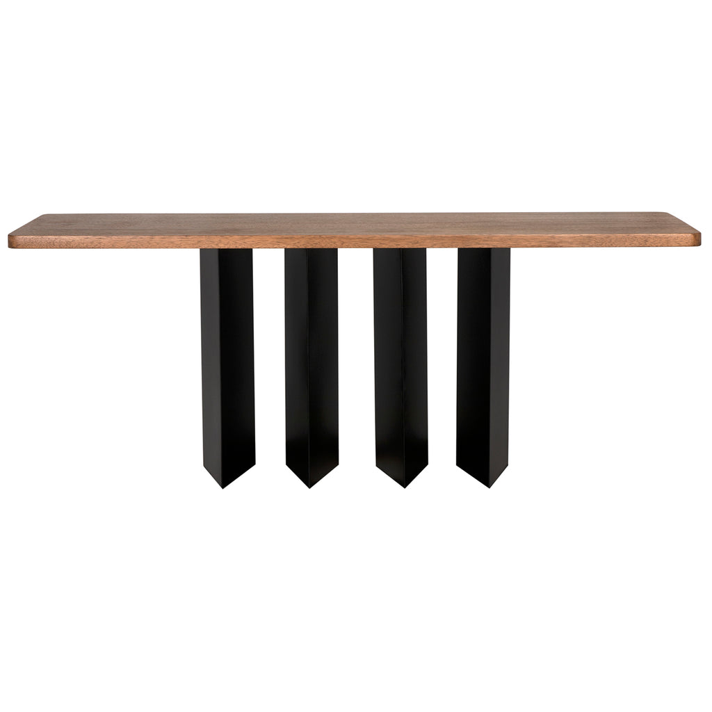 The Noir Delta Console with Metal Base is a striking addition, seamlessly fusing modern aesthetics with industrial elements for a truly captivating design.