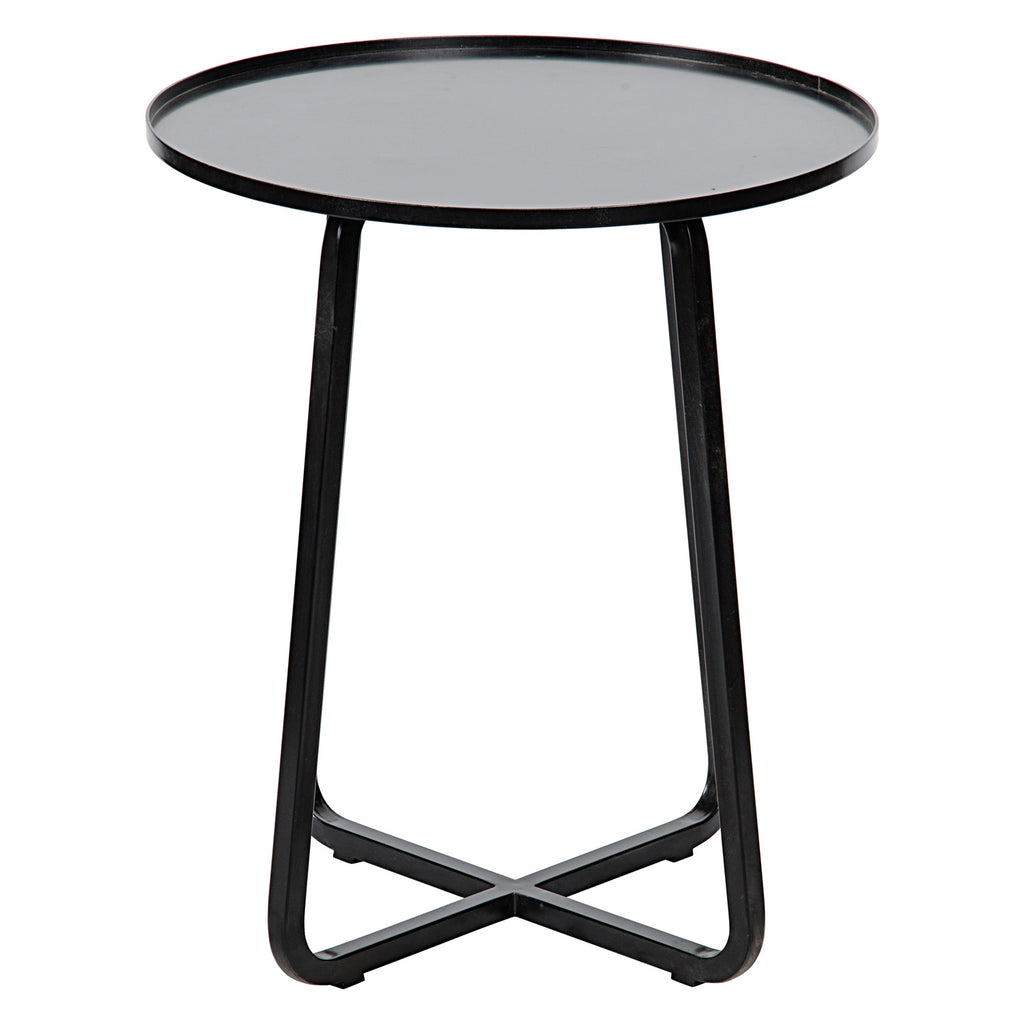 This elegant Noir table accents living rooms and bedrooms with contemporary function. Versatile to match a variety of aesthetics, this furnishing adds style to any space. This simple yet sophisticated tray-top side table has been expertly handcrafted of minimally finished metal. Unobtrusive yet still so lovely, it works in any room of the house.