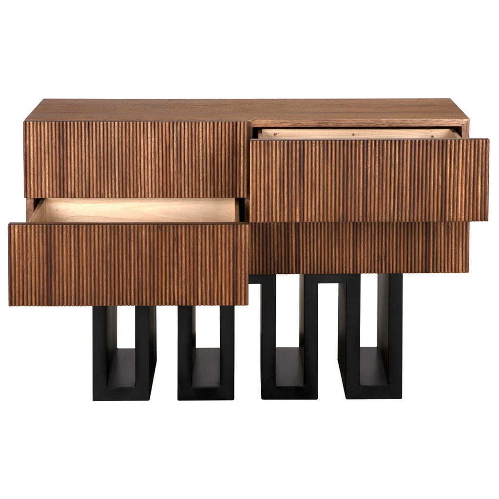 Crafted from premium walnut wood and industrial-grade steel, the Noir Nova Sideboard boasts durability and sophistication. Its dark walnut finish, accentuated by matte black steel elements, exudes a sense of understated luxury while adding a touch of modern edge to any room.