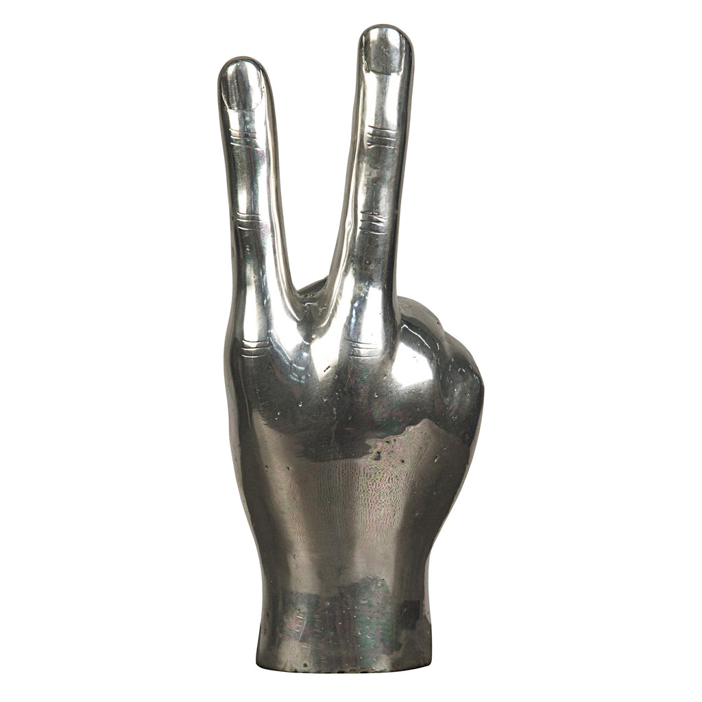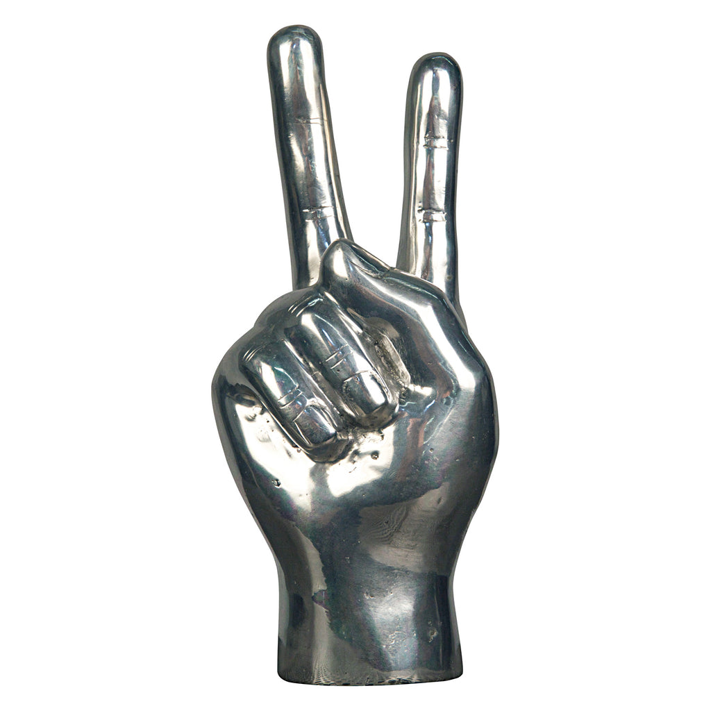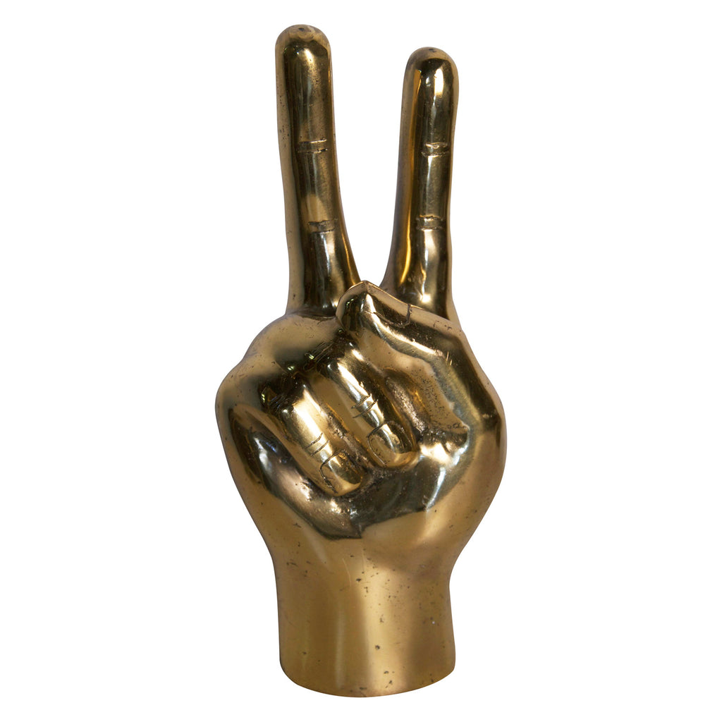 Take your everyday decor to the next level with this glamorous piece from Noir. Offering subtle nods to minimalist style, this effortlessly chic accent captivates atop a mantle. Spread a little peace and love with this fun brass sculpture. An unexpectedly chic way to add interest to any decor! Handcrafted and beautifully detailed, with a textural brass or silver finish, the look is fresh, young and now.