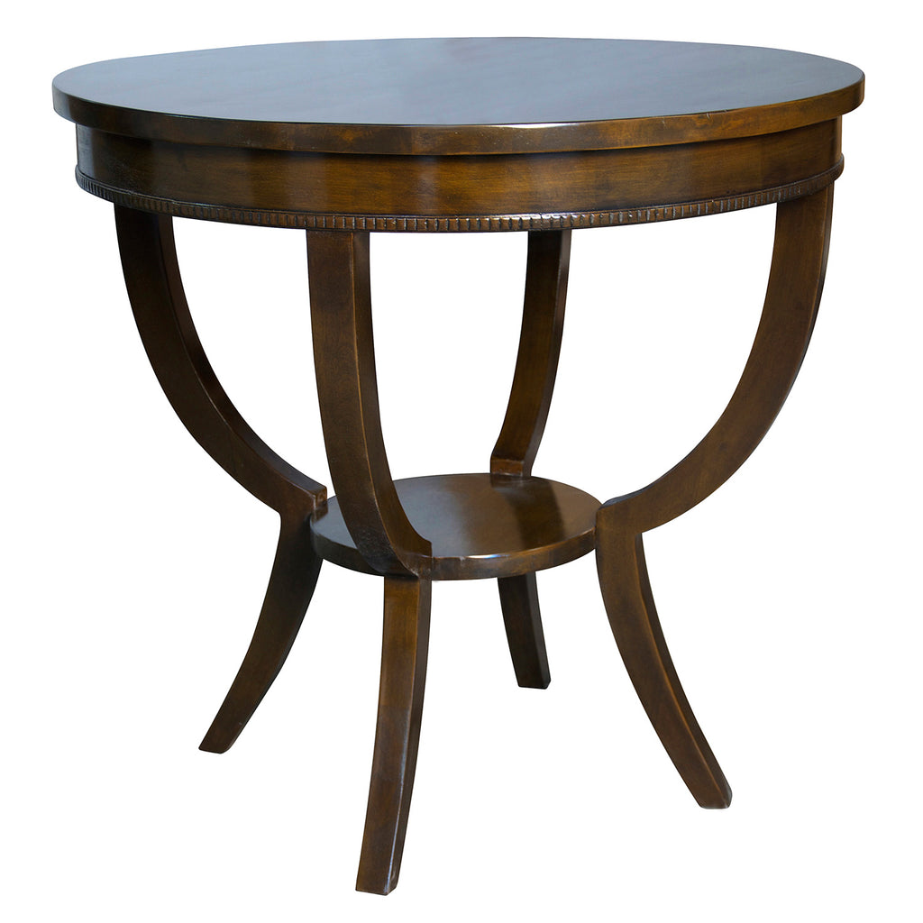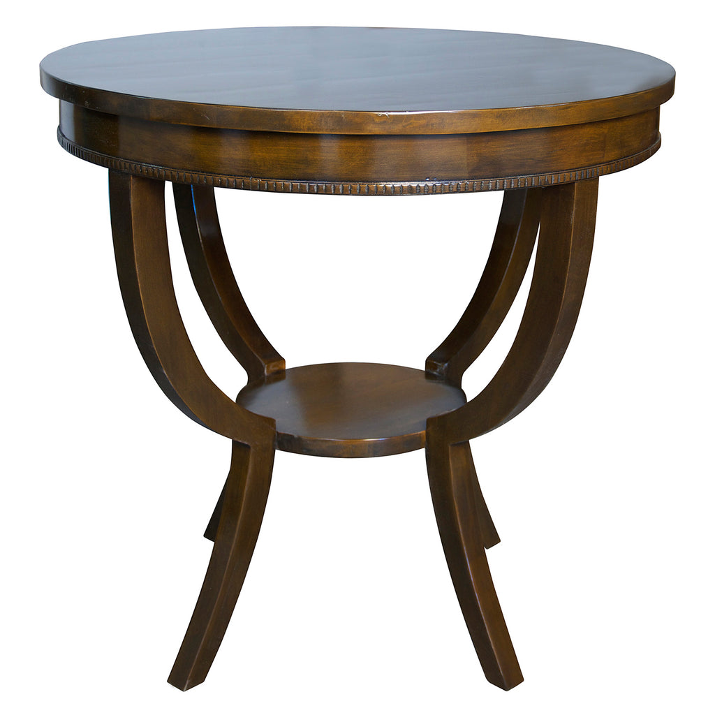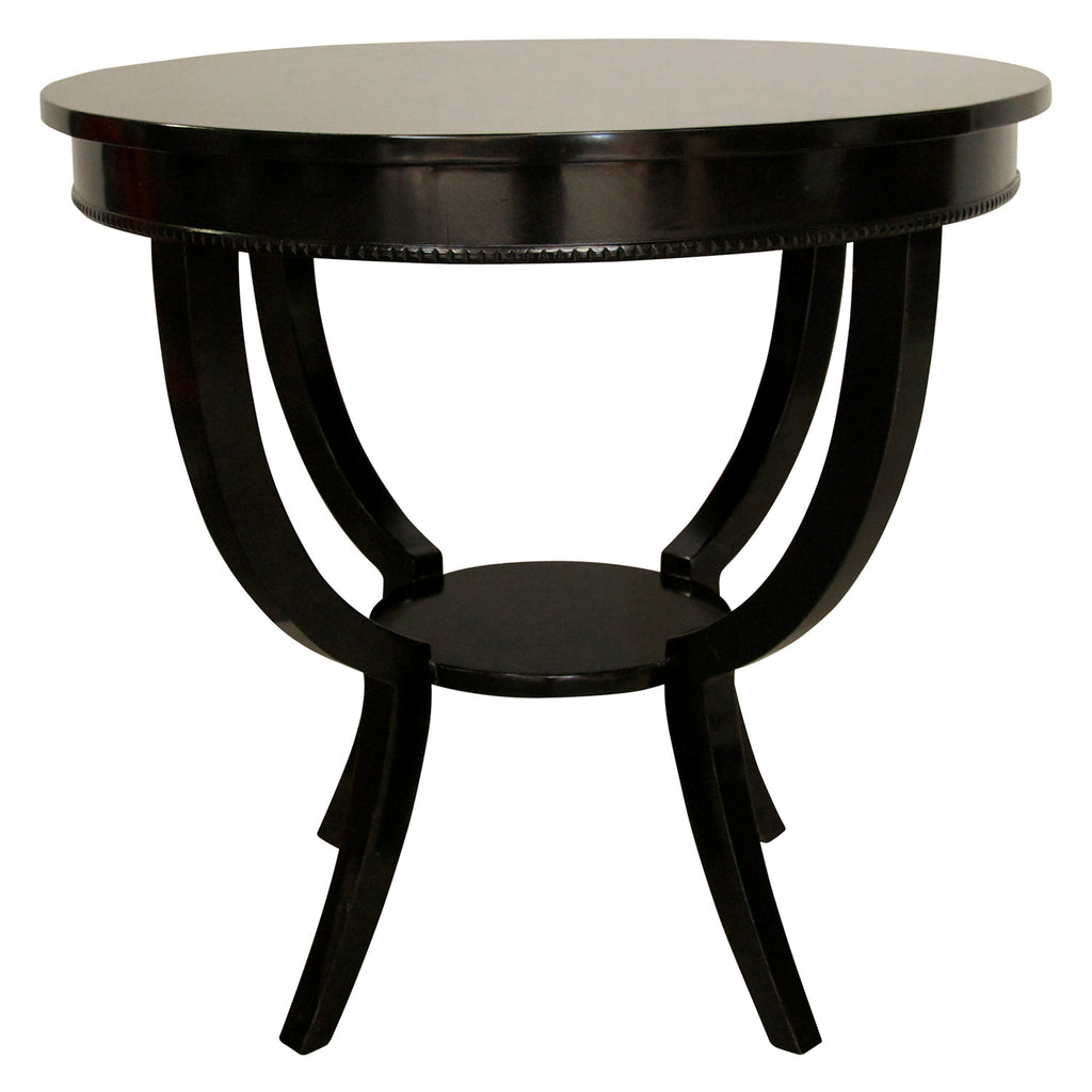 This elegant Noir table accents living rooms and bedrooms with contemporary function. Versatile to match a variety of aesthetics, this furnishing adds style to any space. Graceful curves, solid birch construction, and a charming round top with subtle, hand-carved embellishments, elevate the easy lines of this deceptively simple, but expertly crafted, side table. Available in two hand-applied and gently distressed finishes.