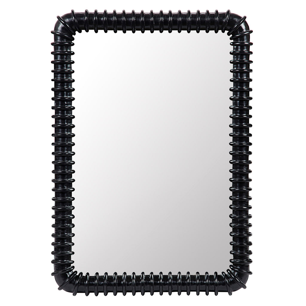 A fresh accent for a wall, this gorgeous Noir mirror reflects spaces with bold style. A must-have in any space, this mirror's unique frame catches the eye. A classic hardwood is given an industrial edge with hand-carved ribbing and a hand-rubbed finish on the urban-inspired, rounded-rectangular Noir Toshi wall mirror.