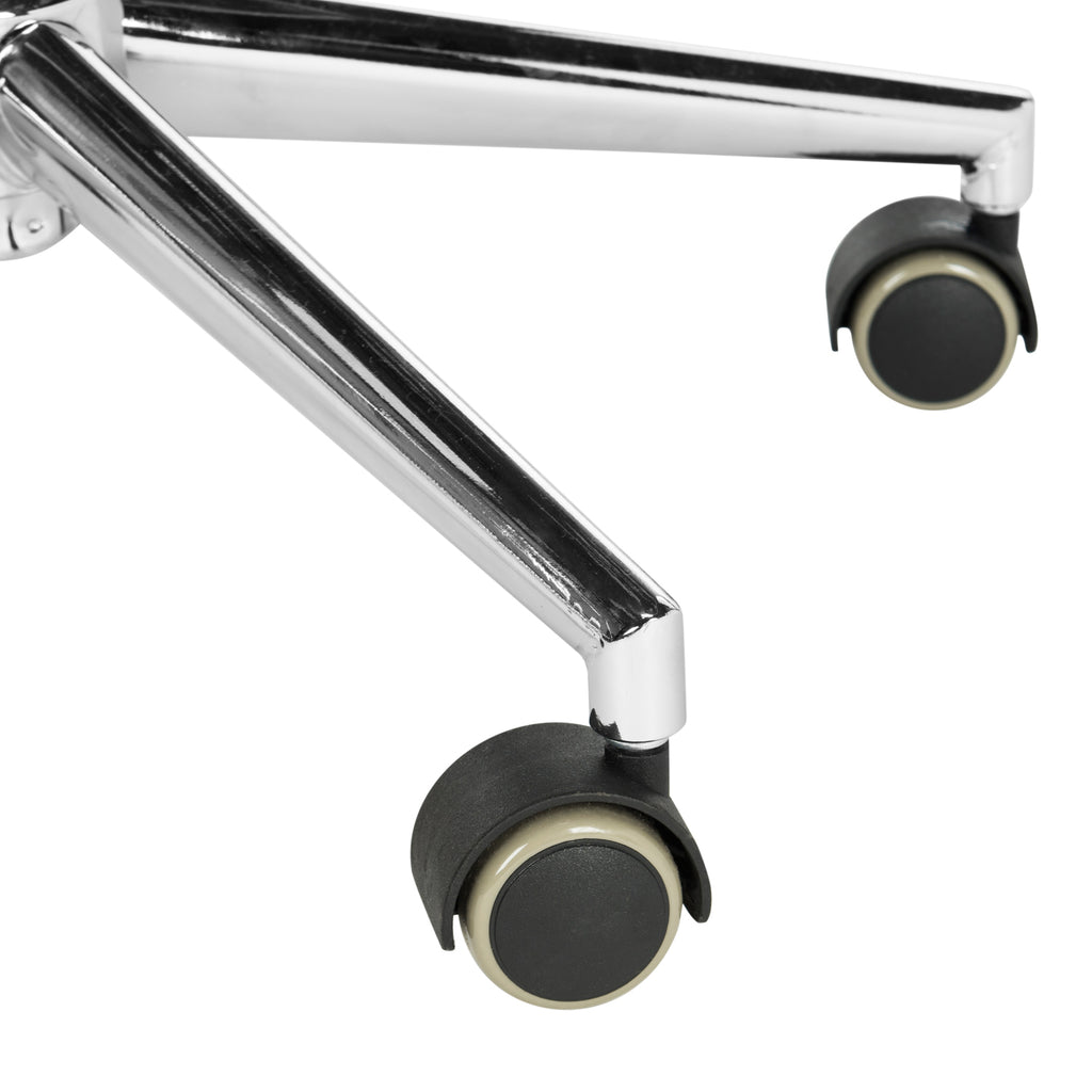 Inspired by the office of a top fashion blogger, this tufted linen chrome leg swivel Tersky Office Chair puts a new spin on classic barrel chair. Its chic tufting and plush grey upholstery are paired with casters and a swivel mechanism for maximum versatility.