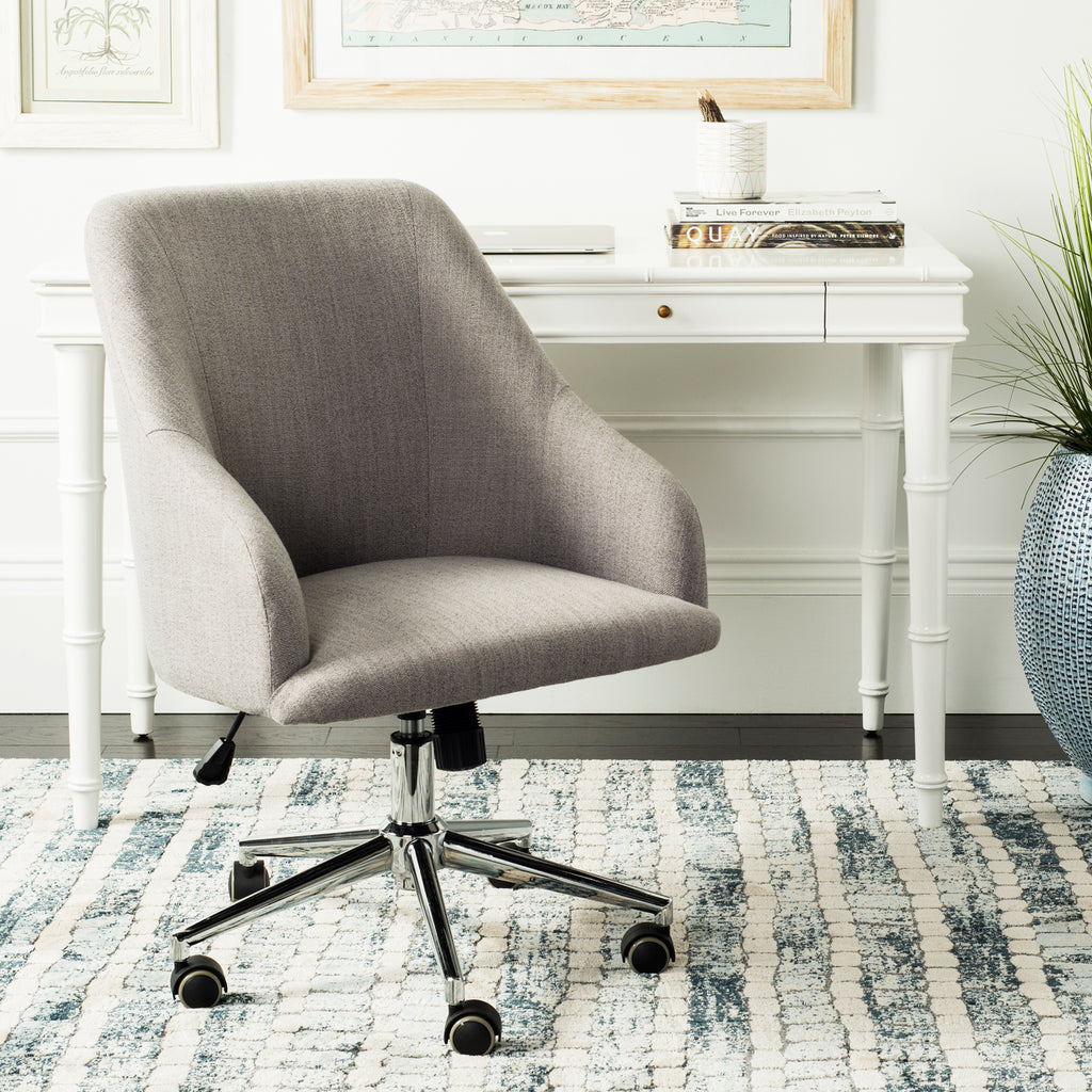 Consider it a promotion. This inviting, gray linen chrome leg swivel Wiltondale Office Chair brings instant sophistication to any home office. Its enveloping plush upholstery soothes the modern soul, while its swivel mechanism and casters adapt to any work space.