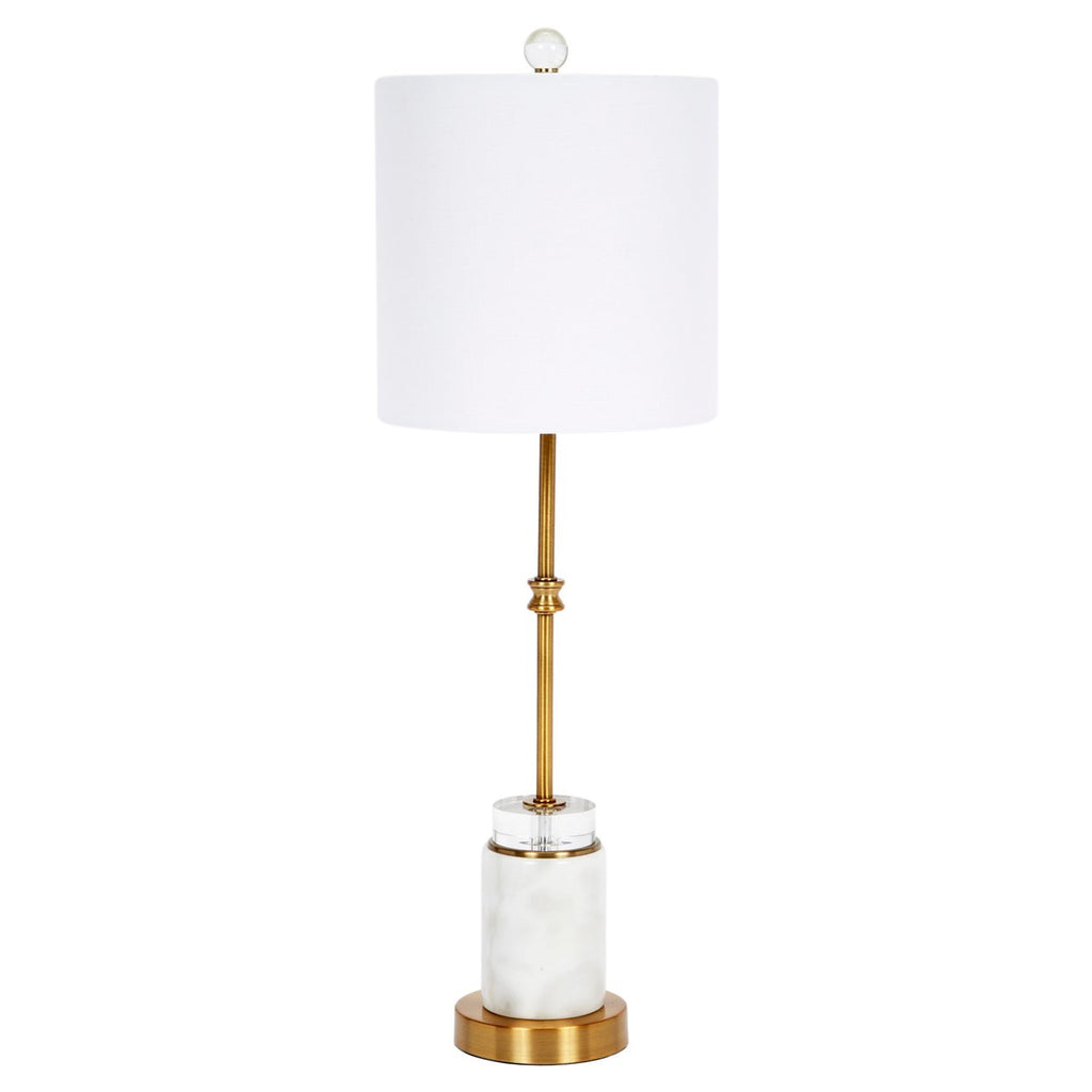 The focus of Old World Design is to fill the void in the lighting and home accessory market with high design and high-quality products. Each exclusive finish is hand applied to produce a high-end look with exceptional value. Ana round buffet lamp with white marble base and white linen shade