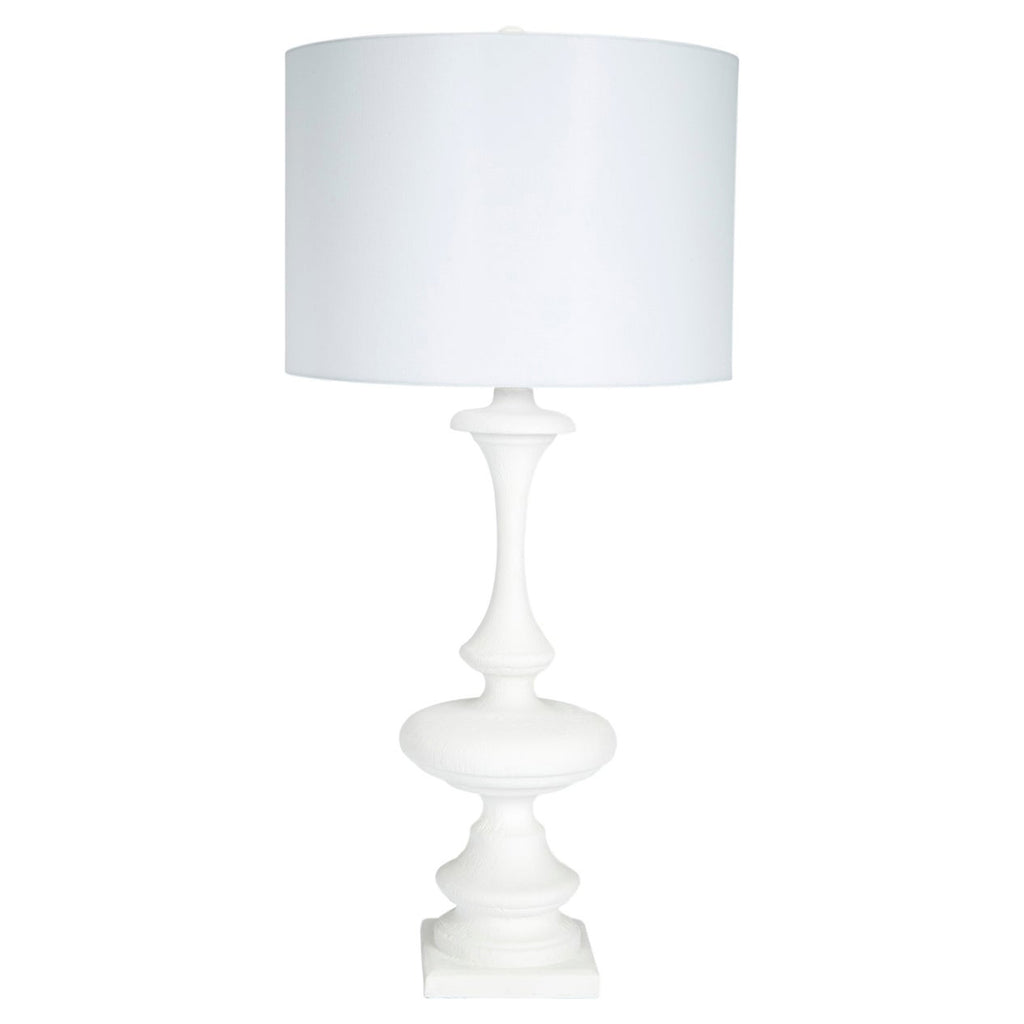 The focus of Old World Design is to fill the void in the lighting and home accessory market with high design and high-quality products. Each exclusive finish is hand applied to produce a high-end look with exceptional value. Barnes white gesso table lamp with white linen shade.