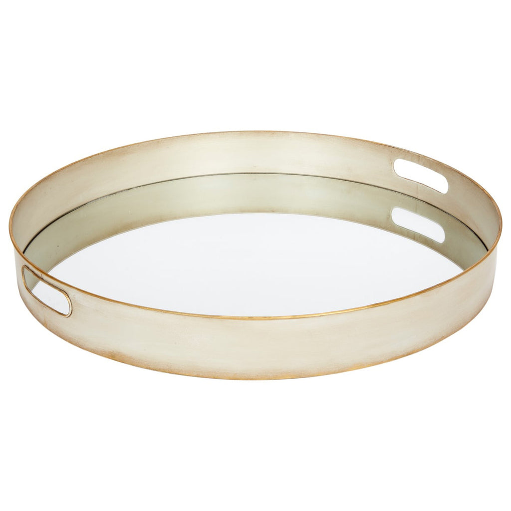 The focus of Old World Design is to fill the void in the lighting and home accessory market with high design and high-quality products. Each exclusive finish is hand applied to produce a high-end look with exceptional value. Luna gray washed metal tray with brushed gold edges.