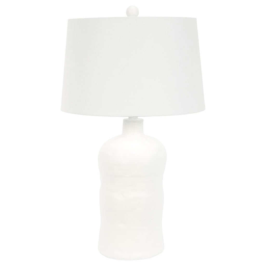 The focus of Old World Design is to fill the void in the lighting and home accessory market with high design and high-quality products. Each exclusive finish is hand applied to produce a high-end look with exceptional value. Sloane smooth white plaster texture table lamp with white shade.