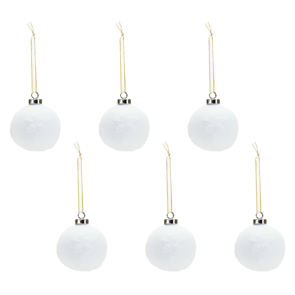 Adorn your Christmas Tree with this beautiful set of Porcelain Ball Ornaments.The classic ball and onion ornament design paired with the raised pine branch design makes this set the perfect addition to your holiday tree decor. The quality porcelain composition is sure to last for seasons to come. The pieces can be used as gifts for friends to cherish, or you can display the set on your own Christmas tree and enjoy them for years to come.