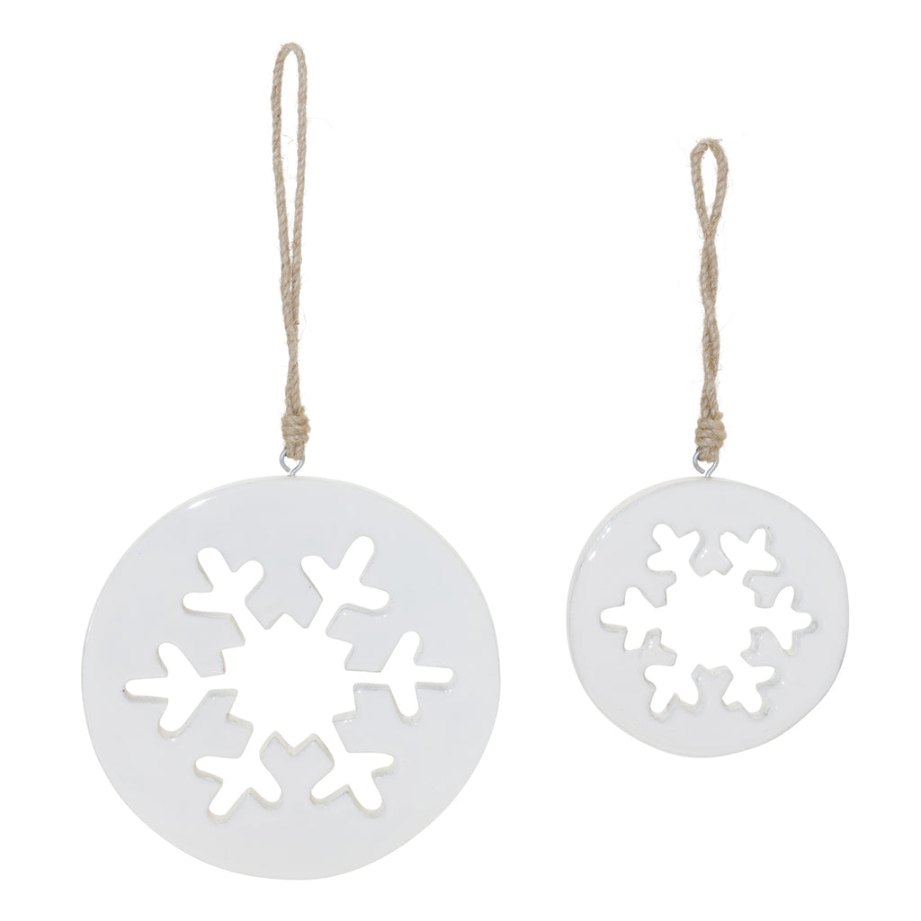 Add a woodland touch to your Christmas tree with this stunning set of Snowflake Cut-Out Ornaments. Featuring 12 pieces and two assorted sizes, with the traditional snowflake cut-out design are the perfect combination to create a memorable dipslay. The quality solid wood composition with natural jute string hanger is sure to endure for seasons to come. Whether you're adding a touch of cheer to your home or gifting to a loved one, these ornaments will definitely bring holiday spirit to your home.