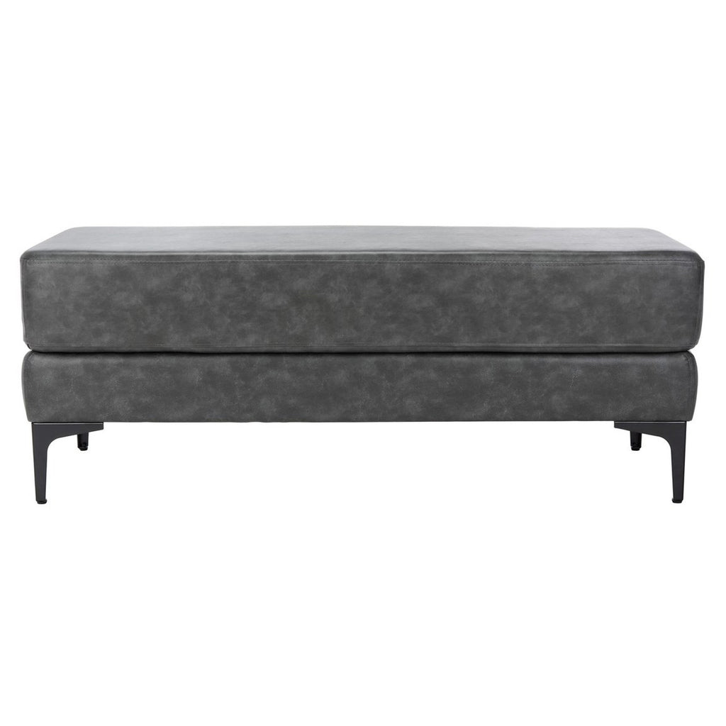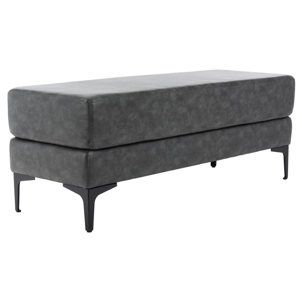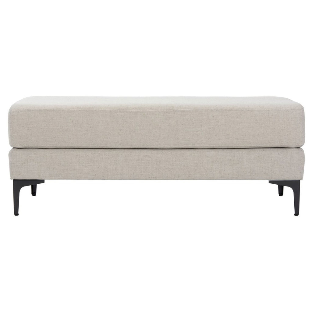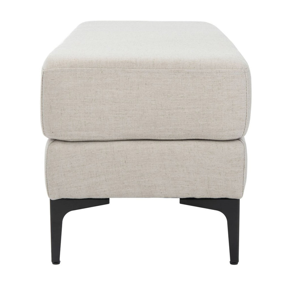 This rectangular bench is the handsome accent piece that will enrich the look and feel of the living room, bedroom, or entryway. Transitionally styled to blend with any room décor, it proudly showcases a slender profile and thick cushioned top, luxuriously upholstered and supported by shapely wood legs in a sleek black finish.