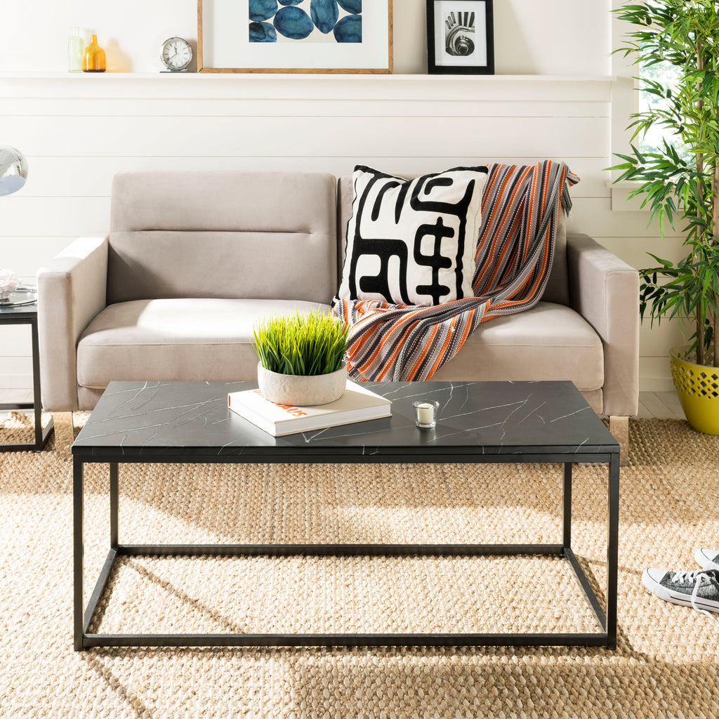 The masterpieces of the legendary Bauhaus inspired this bold contemporary Boulder coffee table. Endlessly versatile, its iconic geometric metal frame features a sleek black marble top that adds grace and charm to any living room. A modern design classic.