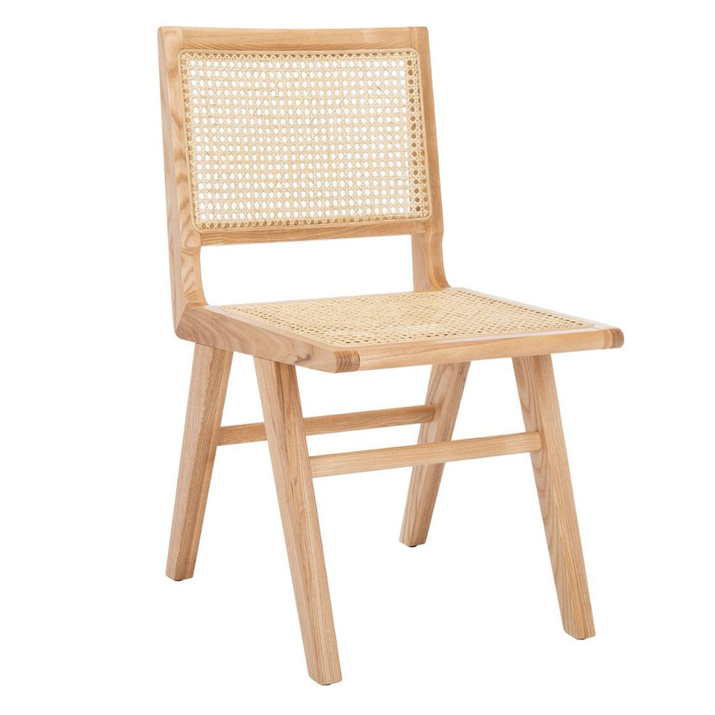 Expressing the opulent side of luxurious coastal decor, this French cane dining chair lends classy-casual character to the dining experience. The minimalist black or natural ash wood frame is stylishly juxtaposed with natural woven French cane for striking artistic contrast, making a fashion-forward statement in any modern interior. Sold as set of two.