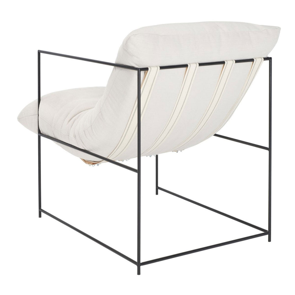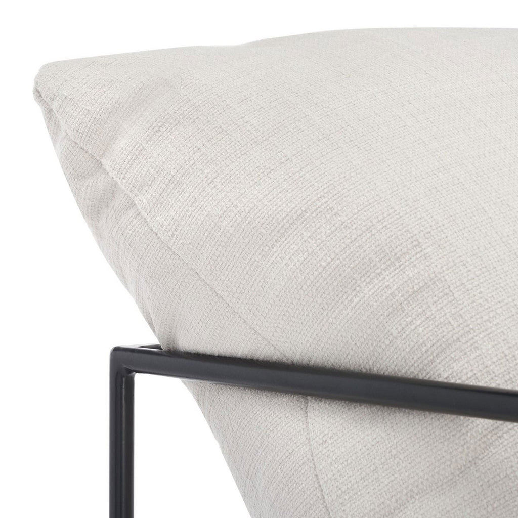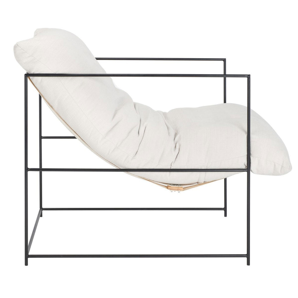 Minimalism gets a comfortable, cozy touch in this accent chair. The ivory pillow top allows for luxurious lounging, while an open black iron frame gives a rich, airy appeal. Designers love the juxtaposition of clean lines and organic curves.