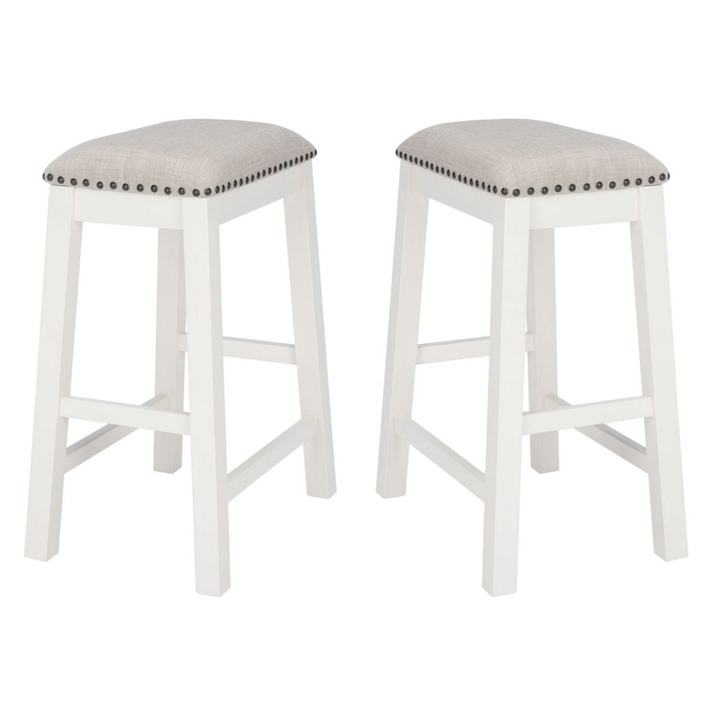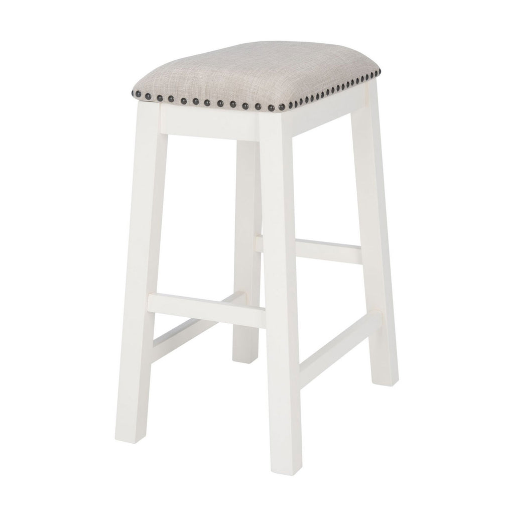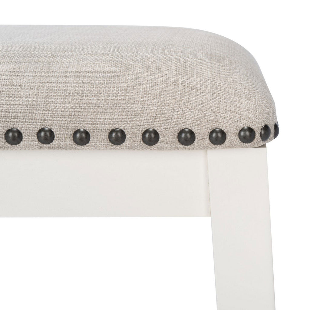 The designer details of this counter stool elevate its classic profile to new heights of contemporary entertaining. The chic nail head trim accenting its soft seat cushion beautifully juxtaposes with its clean white frame, making it a must have for the kitchen or breakfast bar. Sold as set of two.