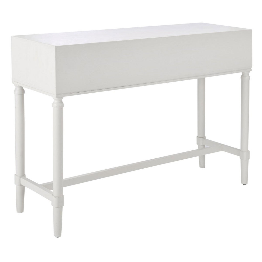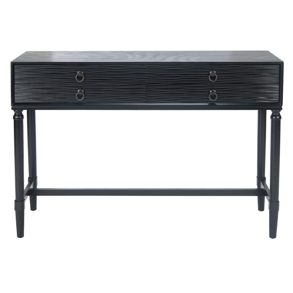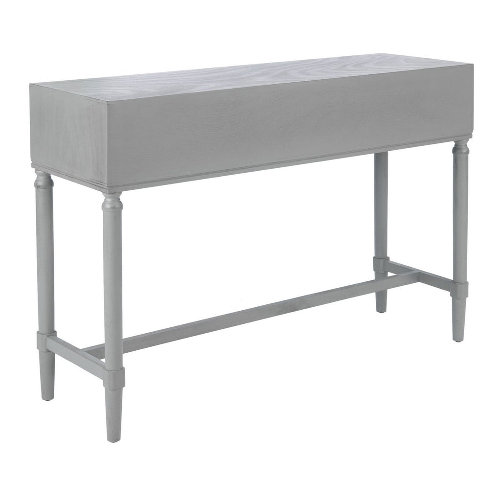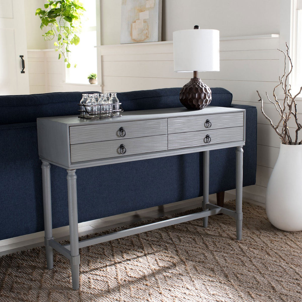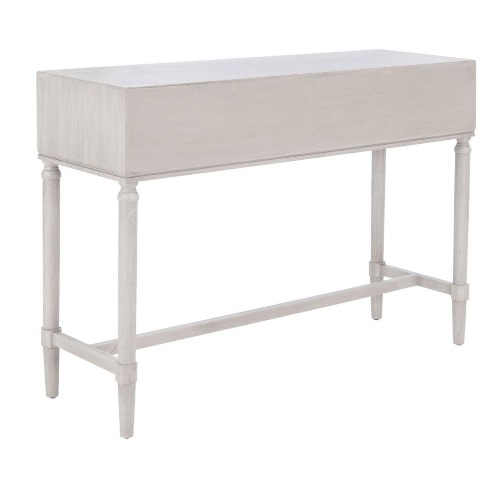 Rustic meets refined in this superb 4-drawer console table. Drawing inspiration from the timeless elegance of French country living along the Riviera, the finely carved accent details are beautifully highlighted by a distressed grey finish.