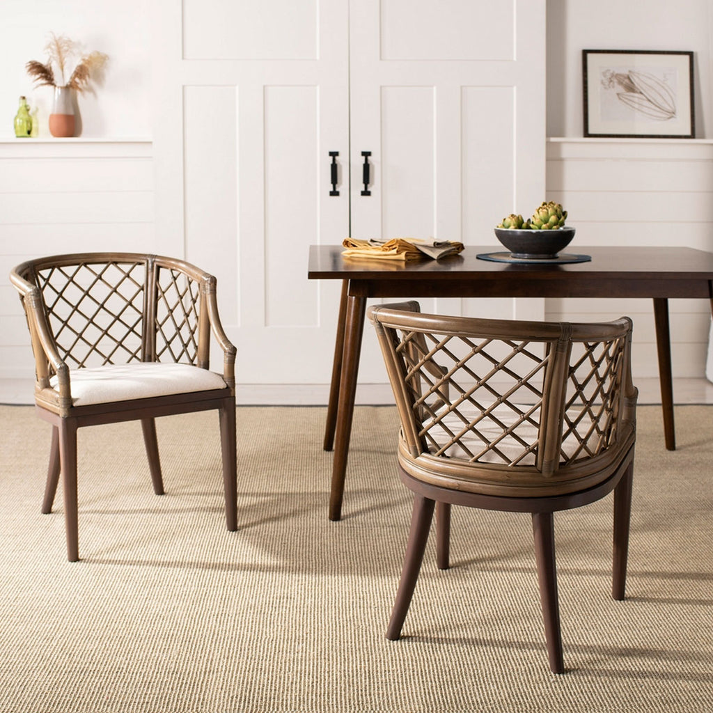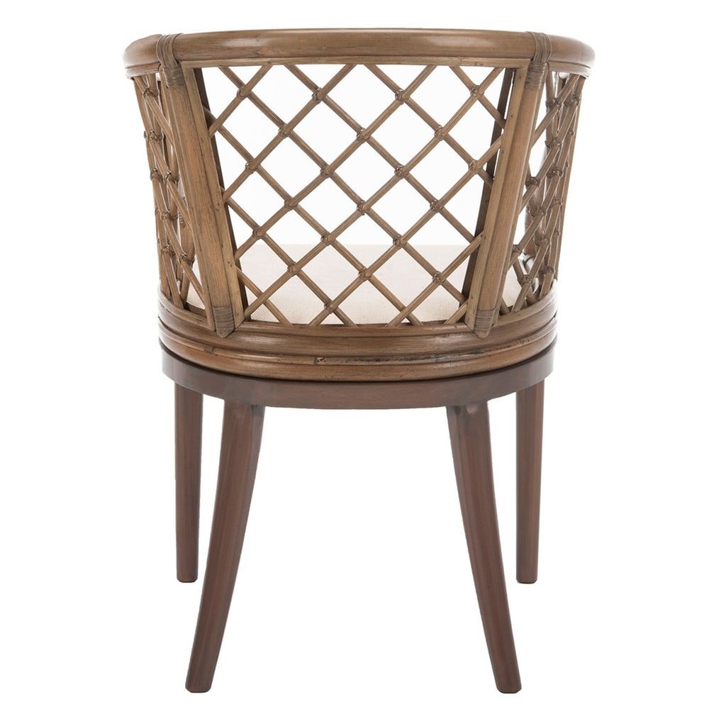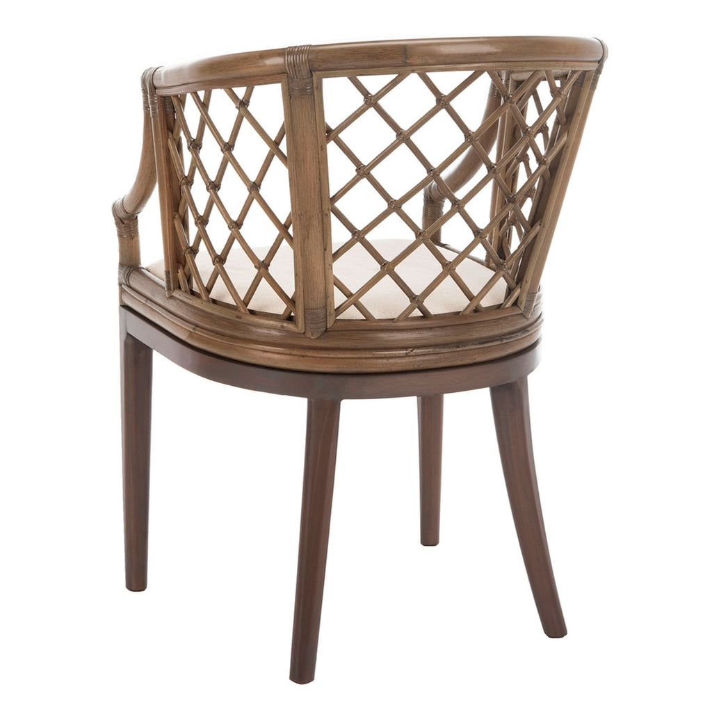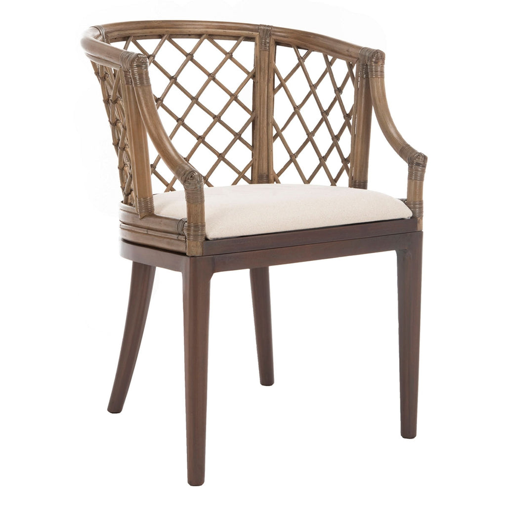 Postcards of Monaco’s lush outdoor bistros inspired this delightful arm chair. Exquisite rattan is accented by rawhide lacing and mahogany legs, finished with a white cotton cushion fit for royalty.