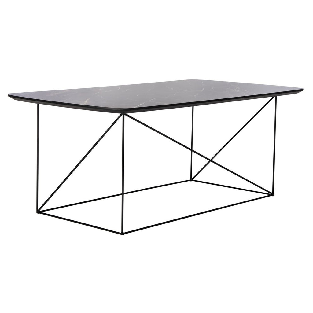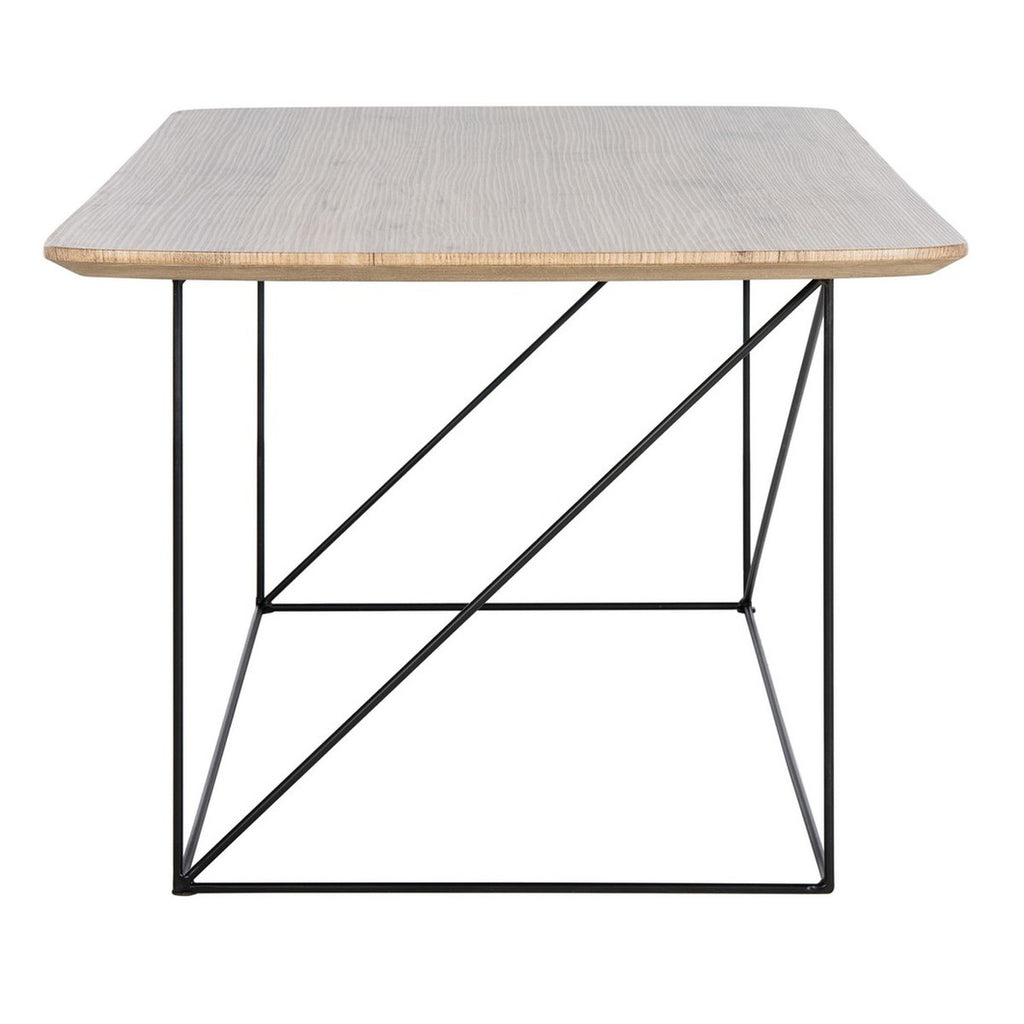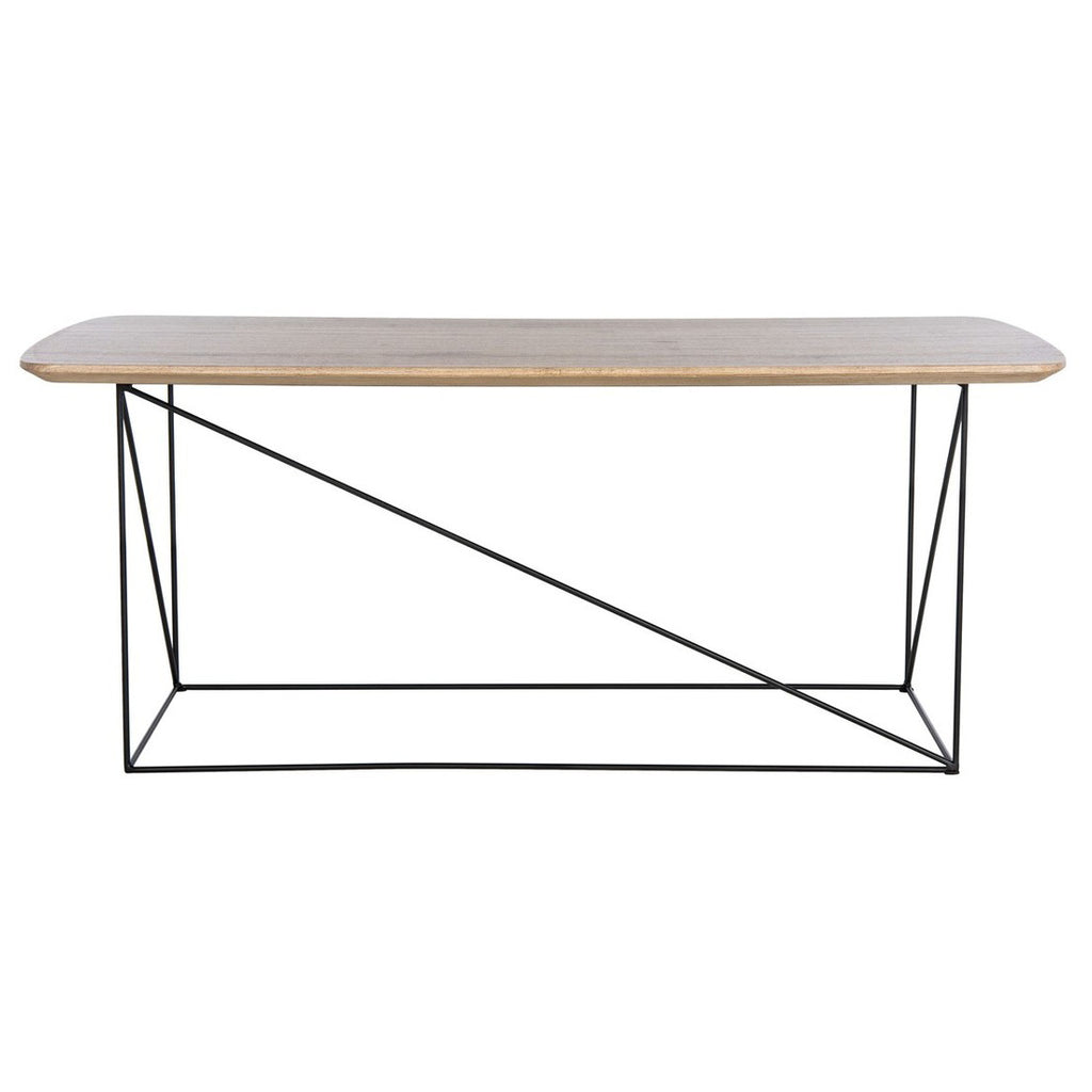The luxurious Scandinavian style of this contemporary rectangle coffee table transforms any living room. Crafted to showcase the bold geometric design of its black iron legs, the softly rounded edges of its wood top make it a classic.