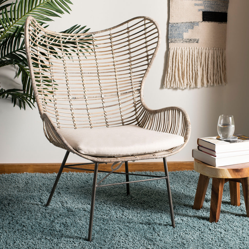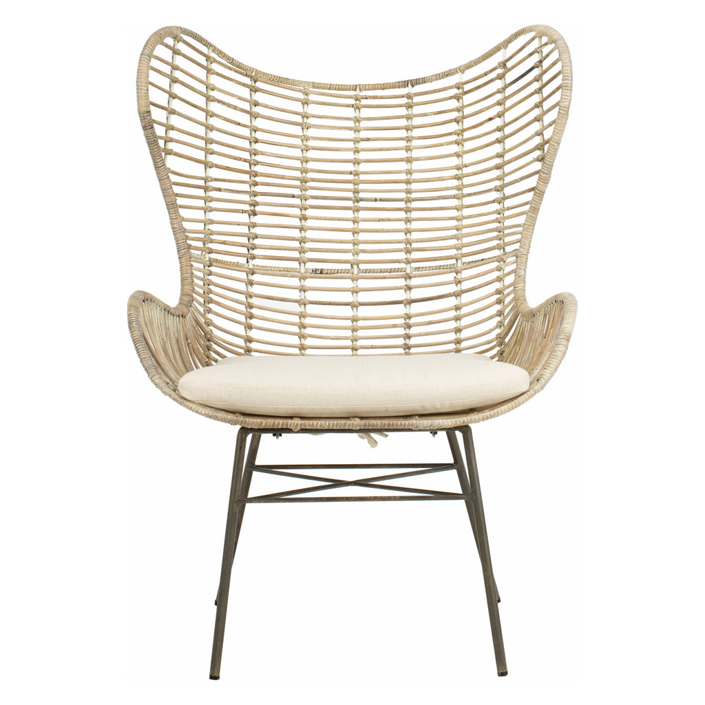 Relax and unwind in this white rattan Trimble wingback chair. A fresh update on the timeless classic, its design highlights its natural style and brings comfort to the living room while maintaining clean lines. Use in pairs for an instant conversation area.