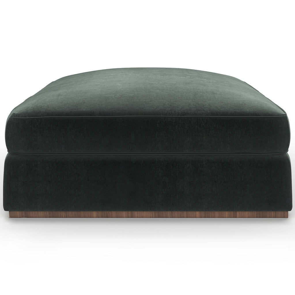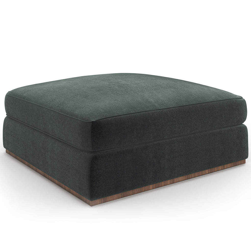 Today’s more formal contemporary style calls for the perfect square ottoman to be the center of attention and integrated into Bello sectional configurations. This elegant piece is fully-upholstered in luxurious Vintage Velvet in Spruce Green or Oatmeal Wide Corduroy Velvet with a subtle Retro Walnut plinth base. The Springdown cushion is deep and plush.