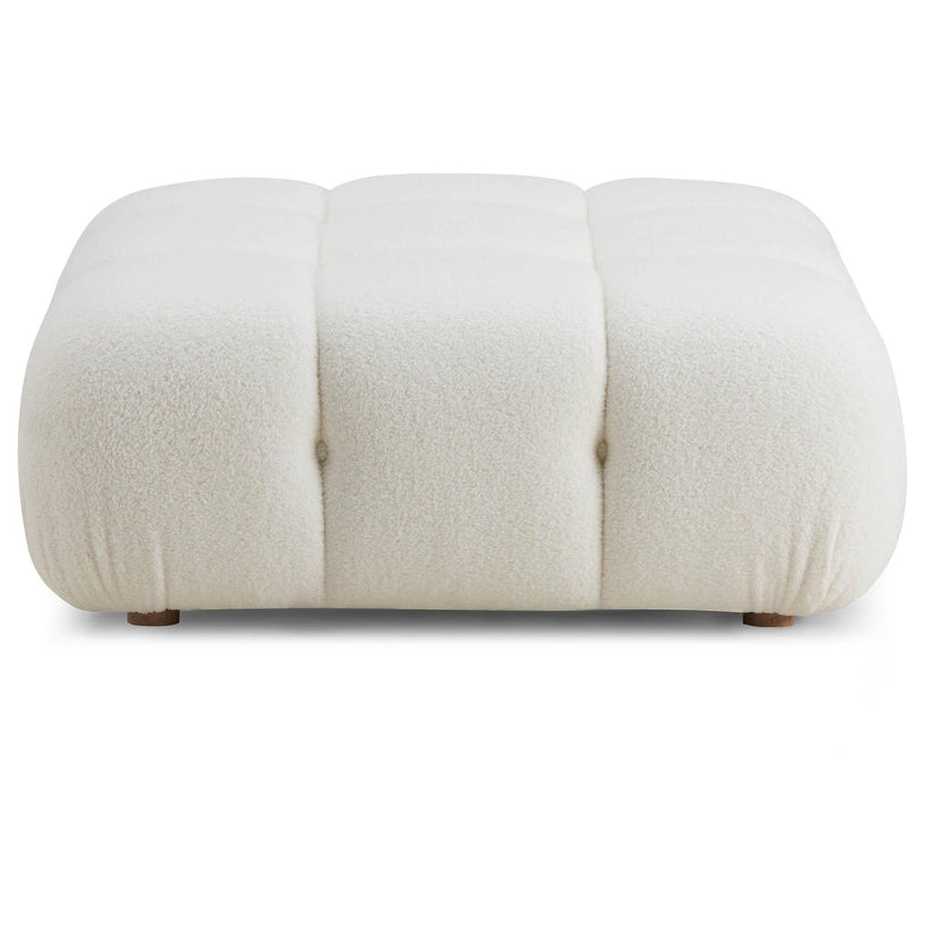 Introducing the Calliope Modular Collection, featuring ultra-soft upholstery that brings unmatched comfort. The deep hand-tufted structure creates the cushioning curves reminiscent of a brioche bun, enveloping you in a pillowy silhouette. With a modular layout allowing for endless configuration possibilities, the detached movable arm cushions add versatility, enabling you to customize your space easily. Available in cream or black vegan shearling and cafe au lait performance velvet options.