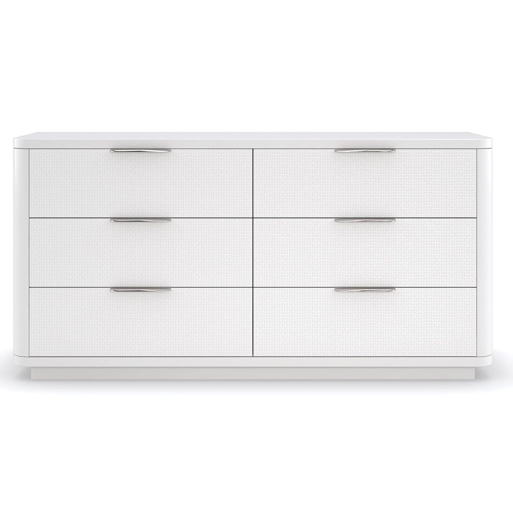 With gently rounded edges and a welcoming texture, this spacious six-drawer dresser is quietly captivating in a Cloud White finish. Carved drawer fronts feature a woven mini-tile motif and finger-cup pulls to keep the look clean. Style with our In Touch and Touch Base bedside tables to create a calming retreat for yourself or guests.