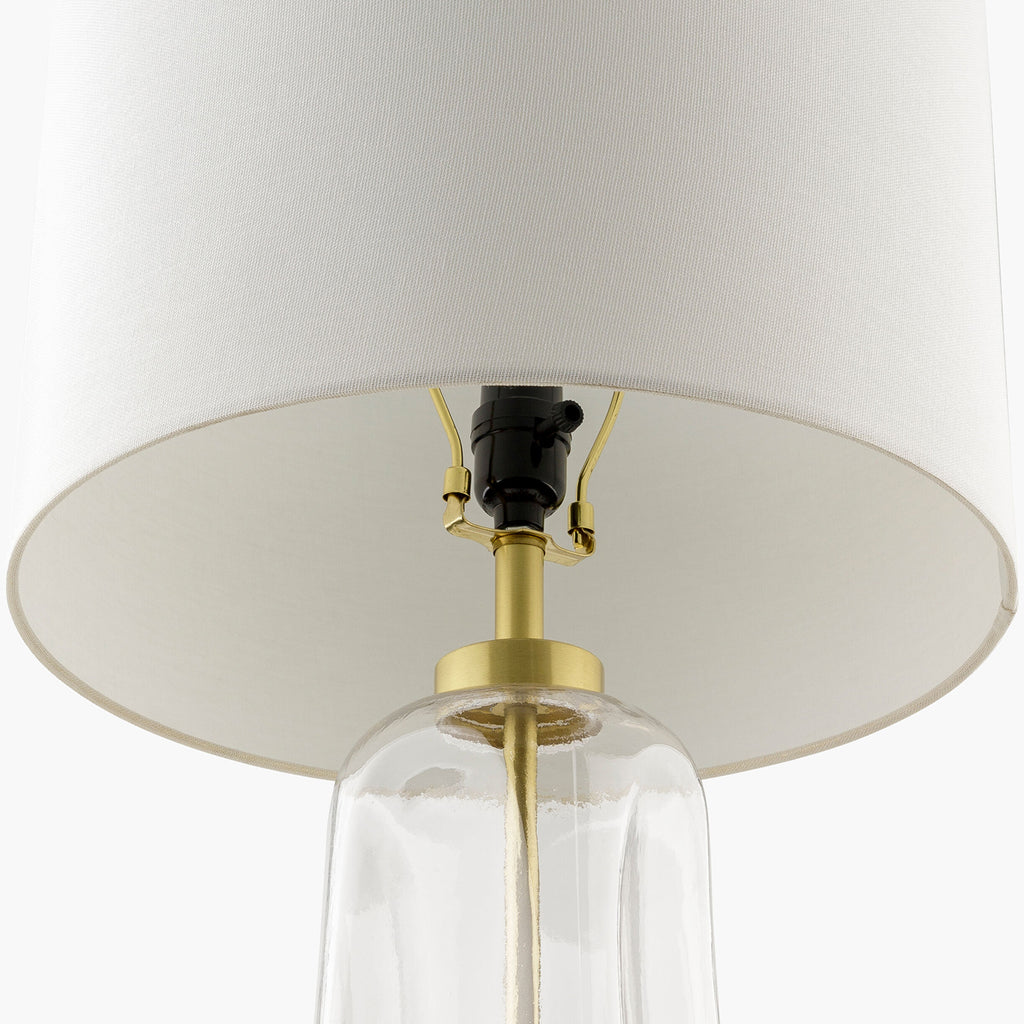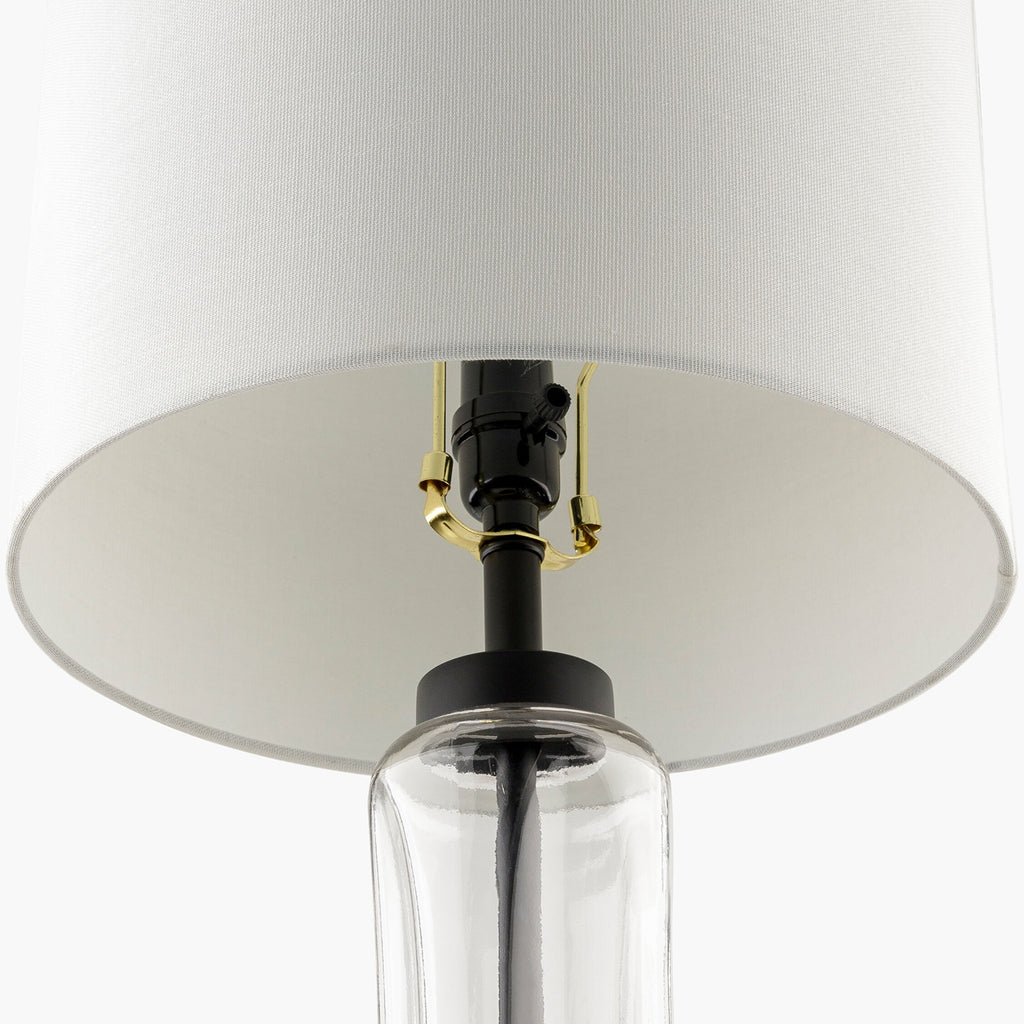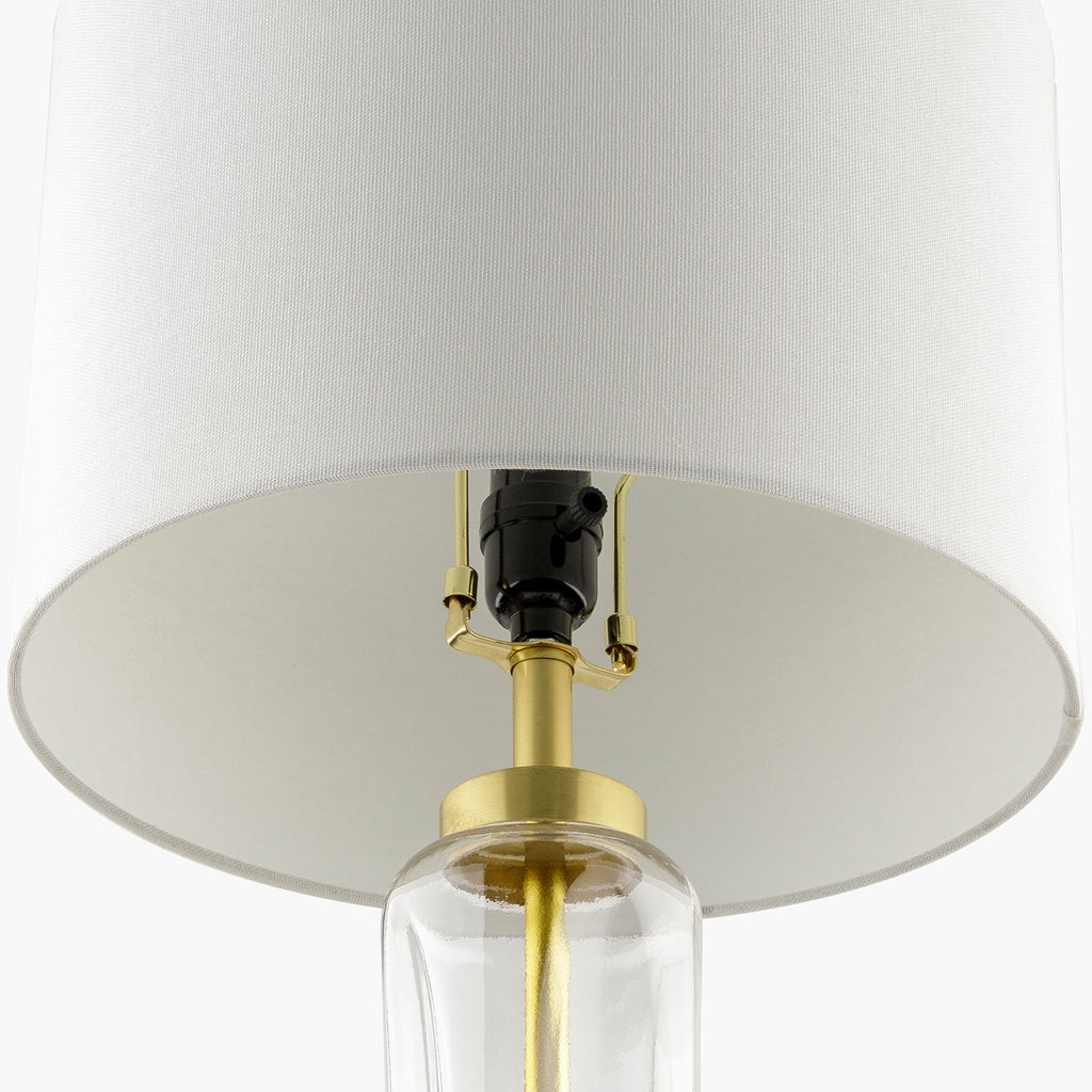 • Color: Translucent Clear/Brass/White Cotton Shade or Translucent Clear/Painted Black/White Cotton Shade