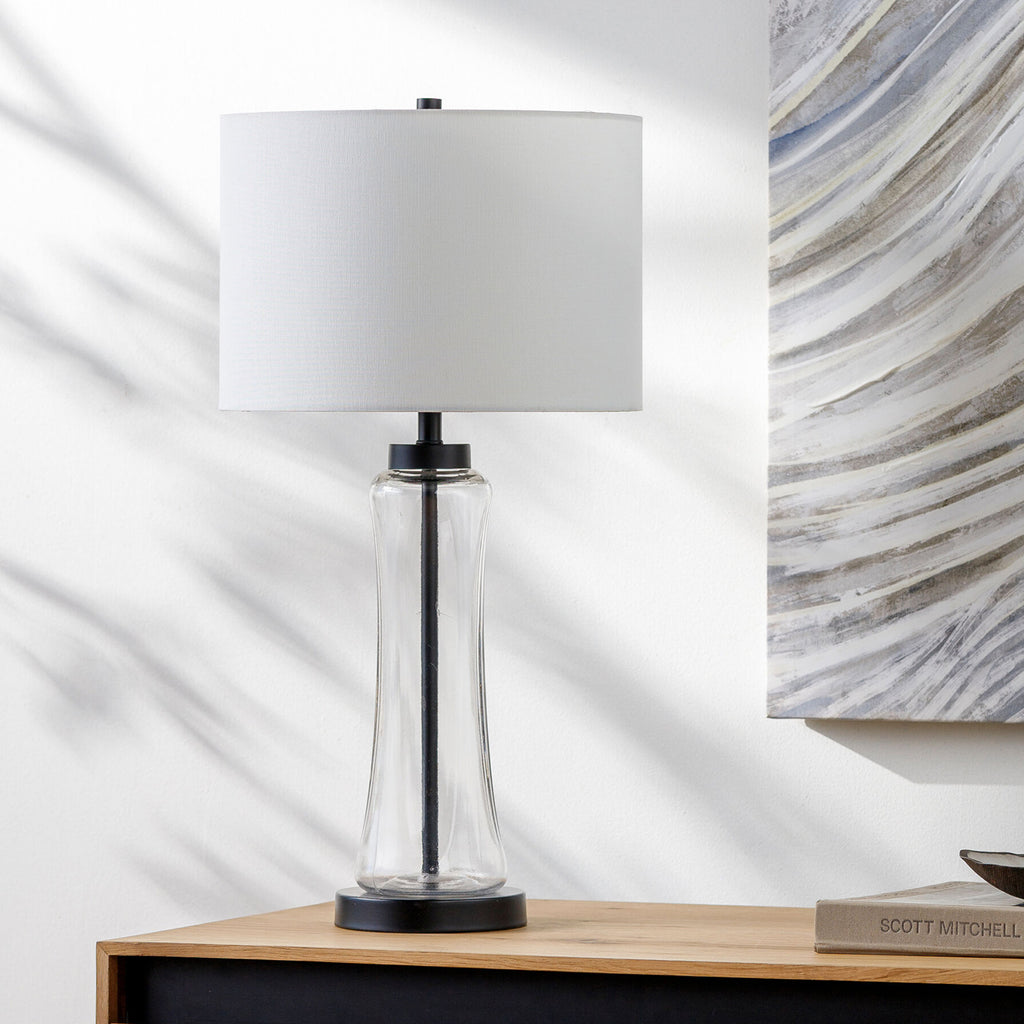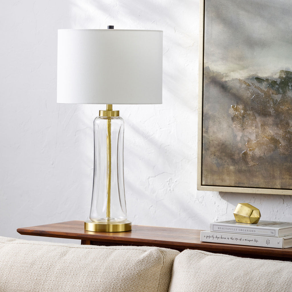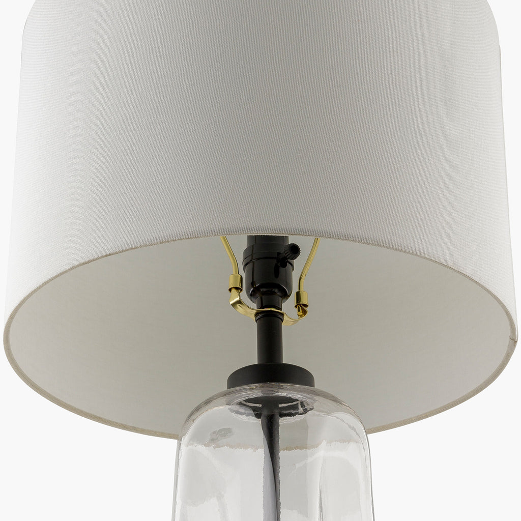 • Color: Translucent Clear/Brass/White Cotton Shade or Translucent Clear/Painted Black/White Cotton Shade