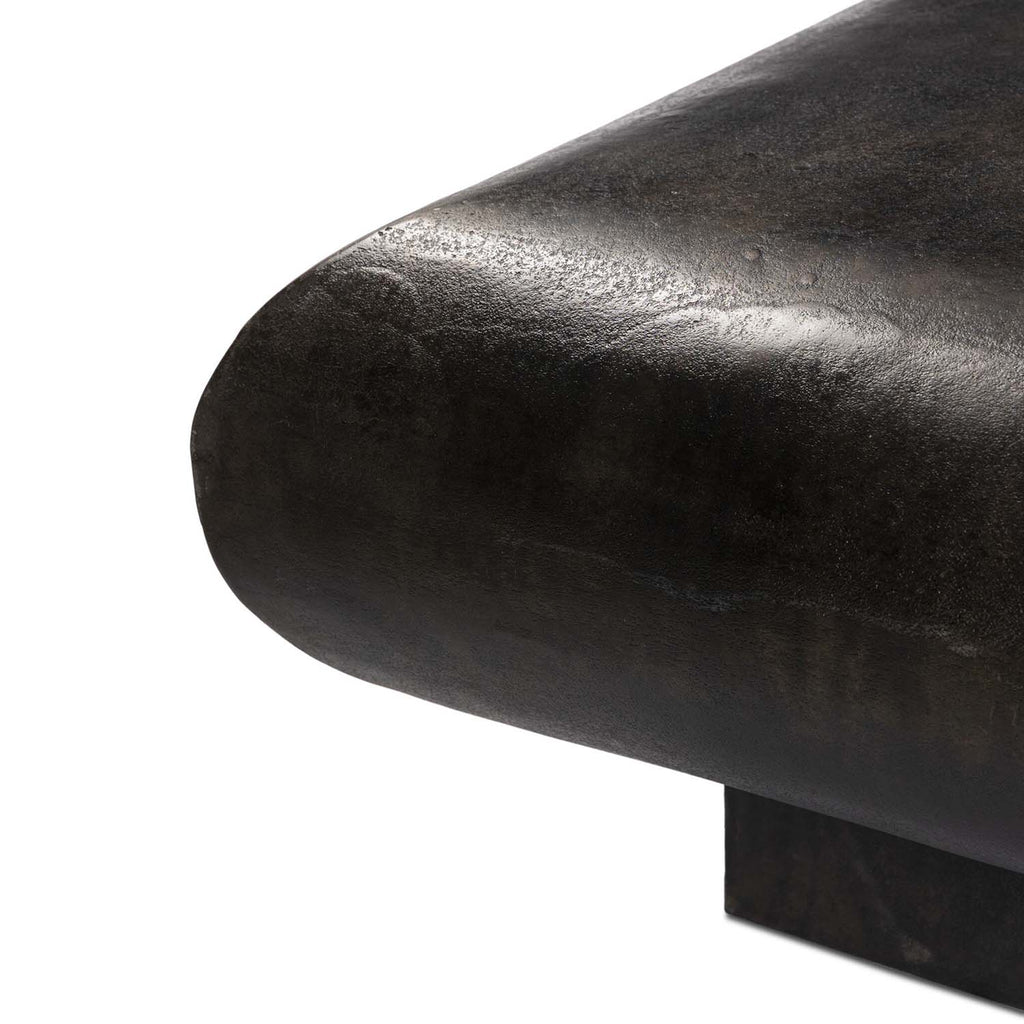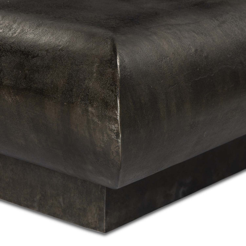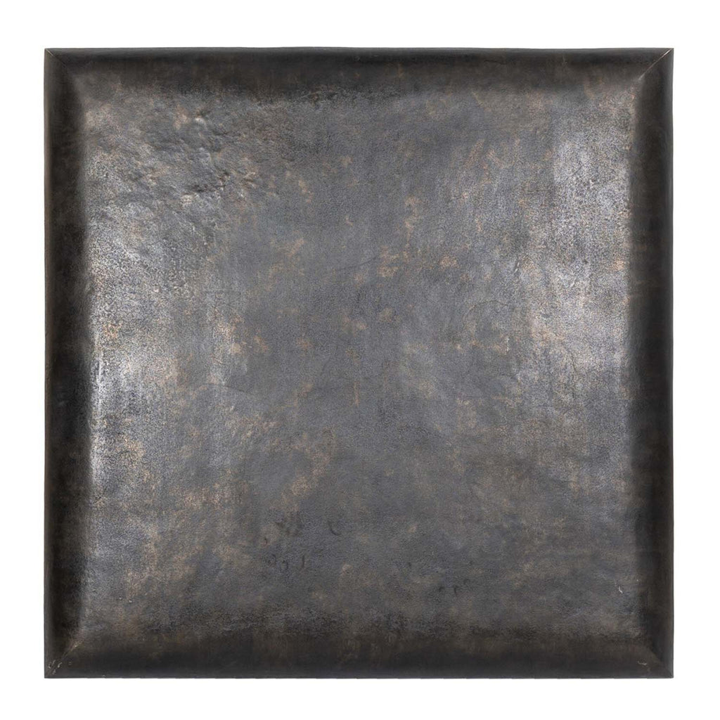 Finished in a distressed bronze with beautiful high and lows, cast aluminum shapes a softened square atop a plinth base — the perfect centerpiece for outdoor gatherings.