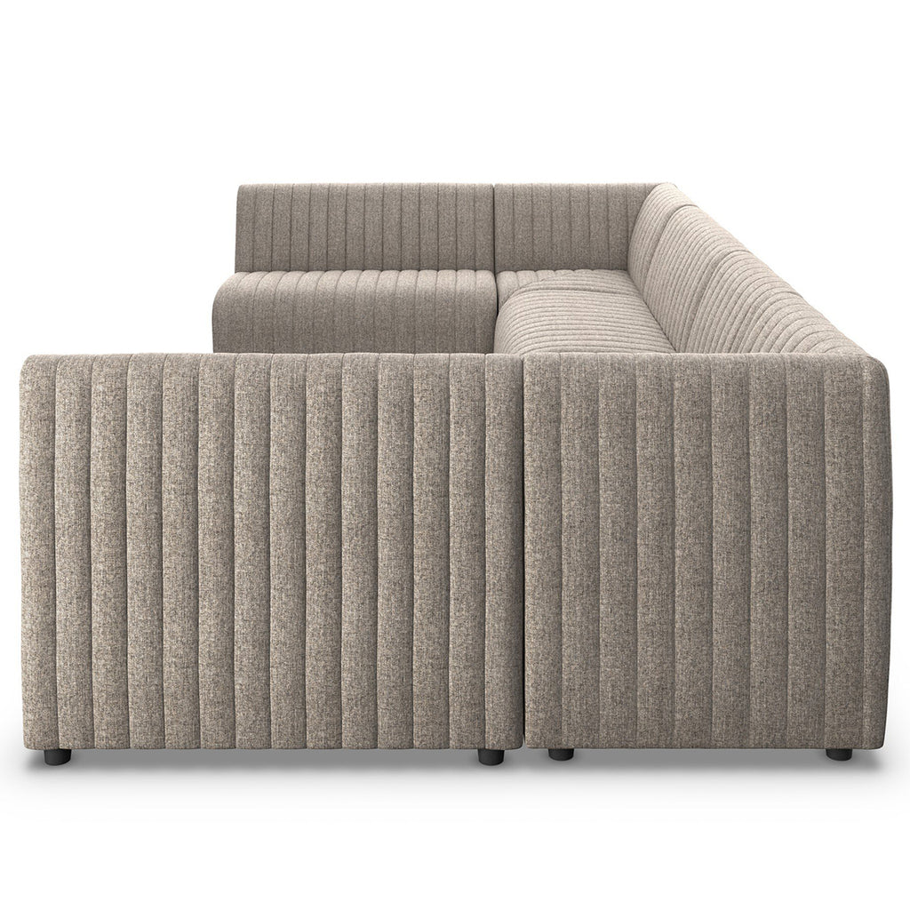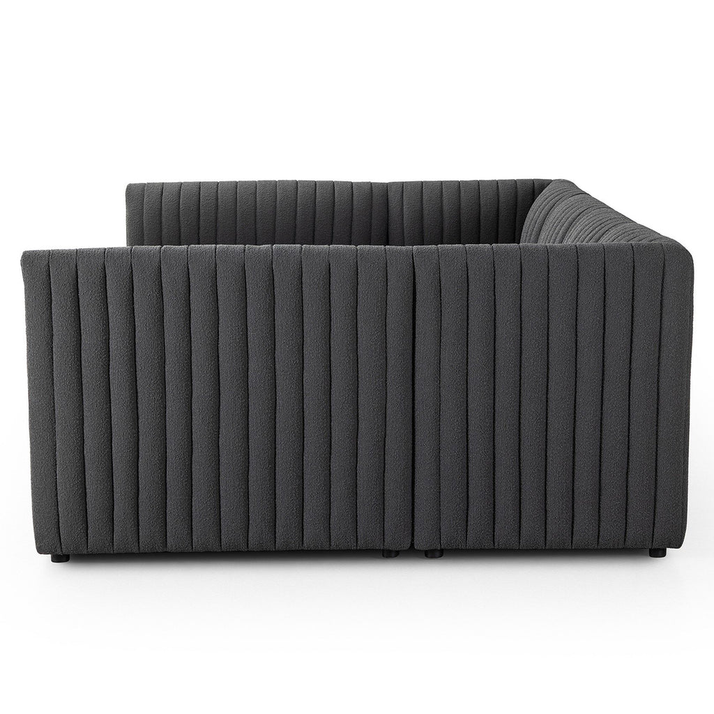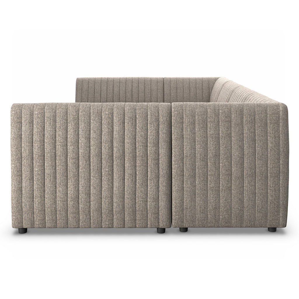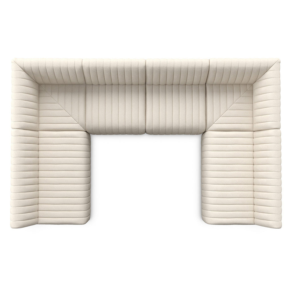 High-performance fabric features dramatic channeling, for trend-forward texture and sumptuous sit. Option to pair with matching pieces for clever modularity.