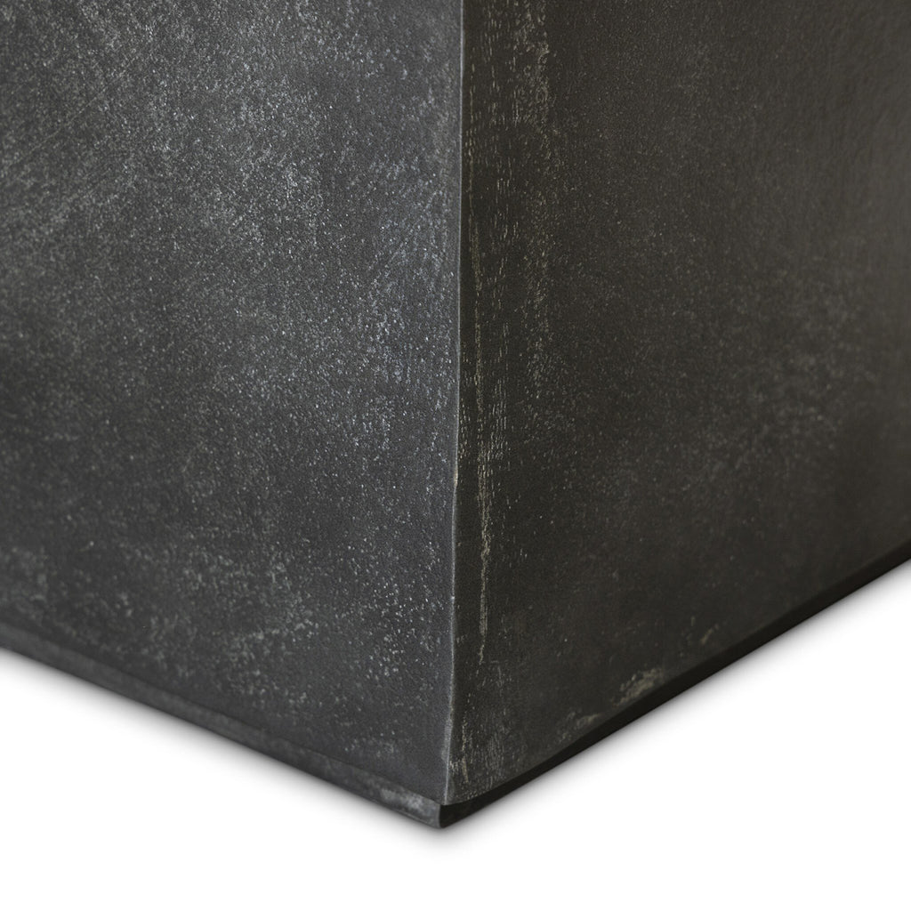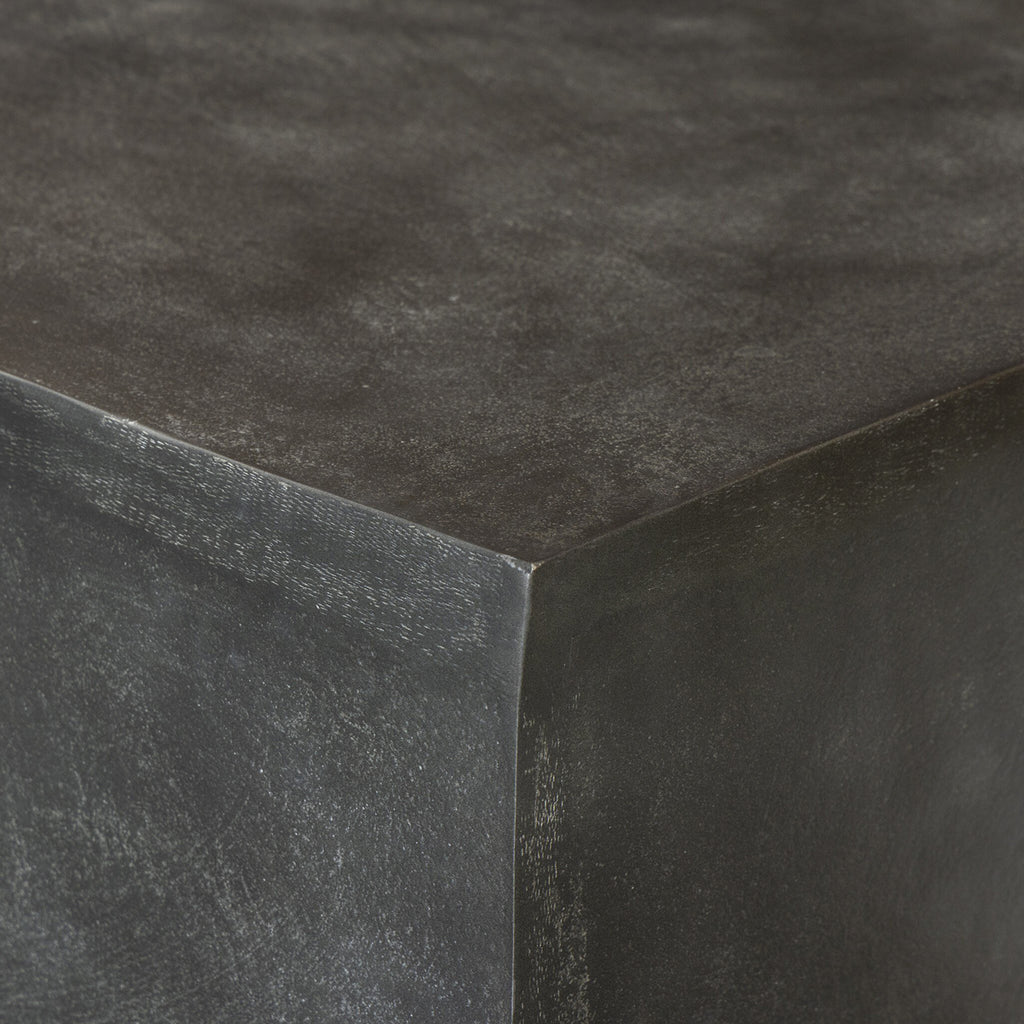 Let the beauty of simplicity shine. A plinth-style outdoor coffee table is crafted of cast aluminum in a deep aged grey. Cover or store indoors during inclement weather and when not in use.