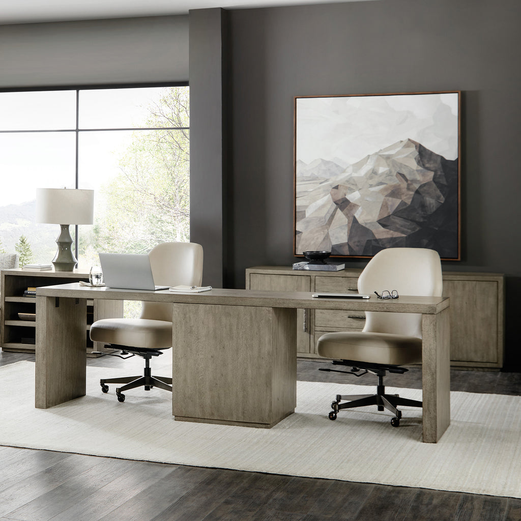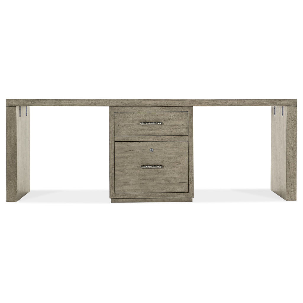 Capturing the essence of nature’s organic color palette on a clean-lined, simple silhouette, the Linville Falls Desk is crafted of Oak Veneers with a soft smoked gray Mink finish. The top has a functional base with a small file in the center and two leg end panels. The small file has a top utility drawer and a lower drawer with a locking file drawer with pendaflex filing system. The desk is fully finished on the back so it can be floated in a room.