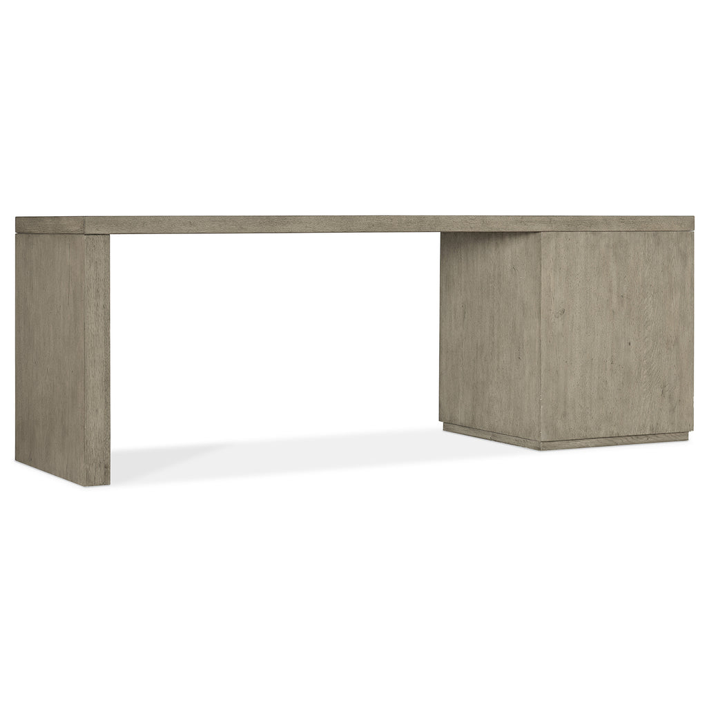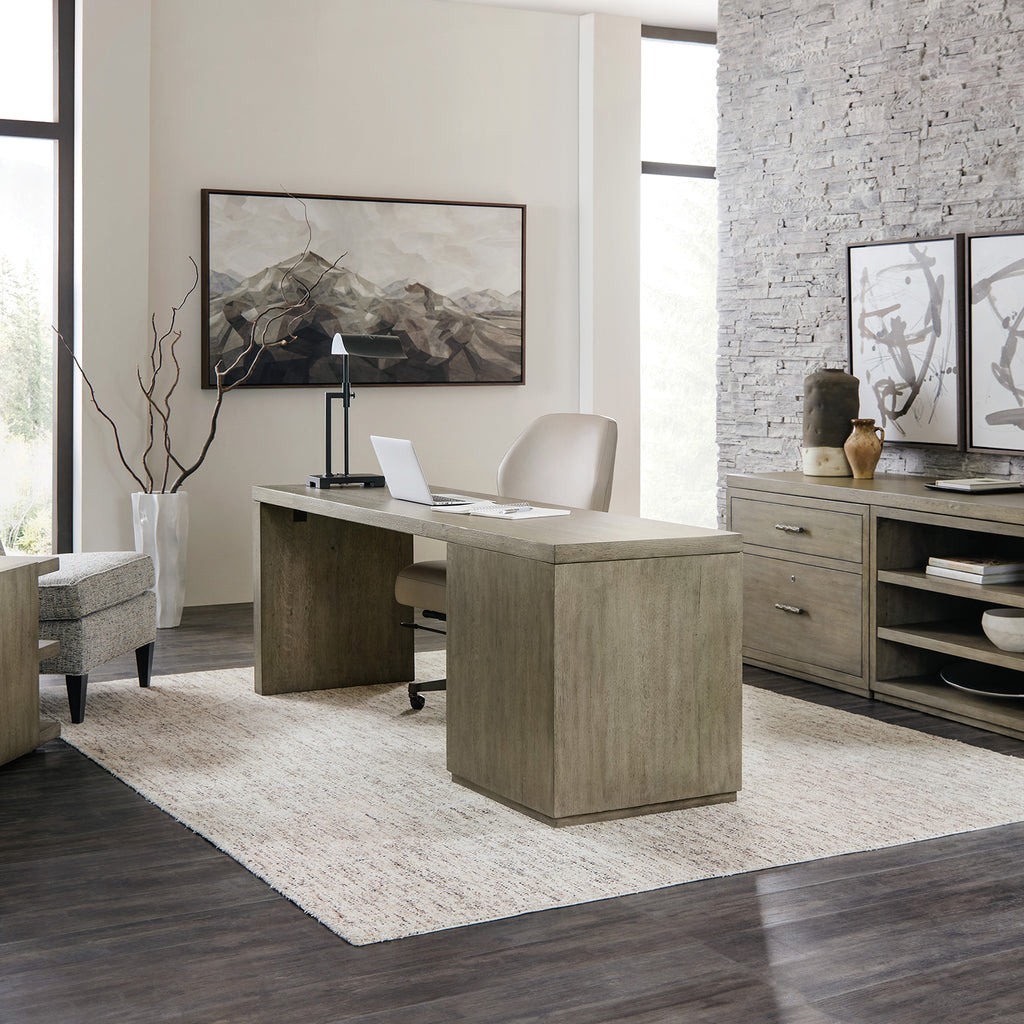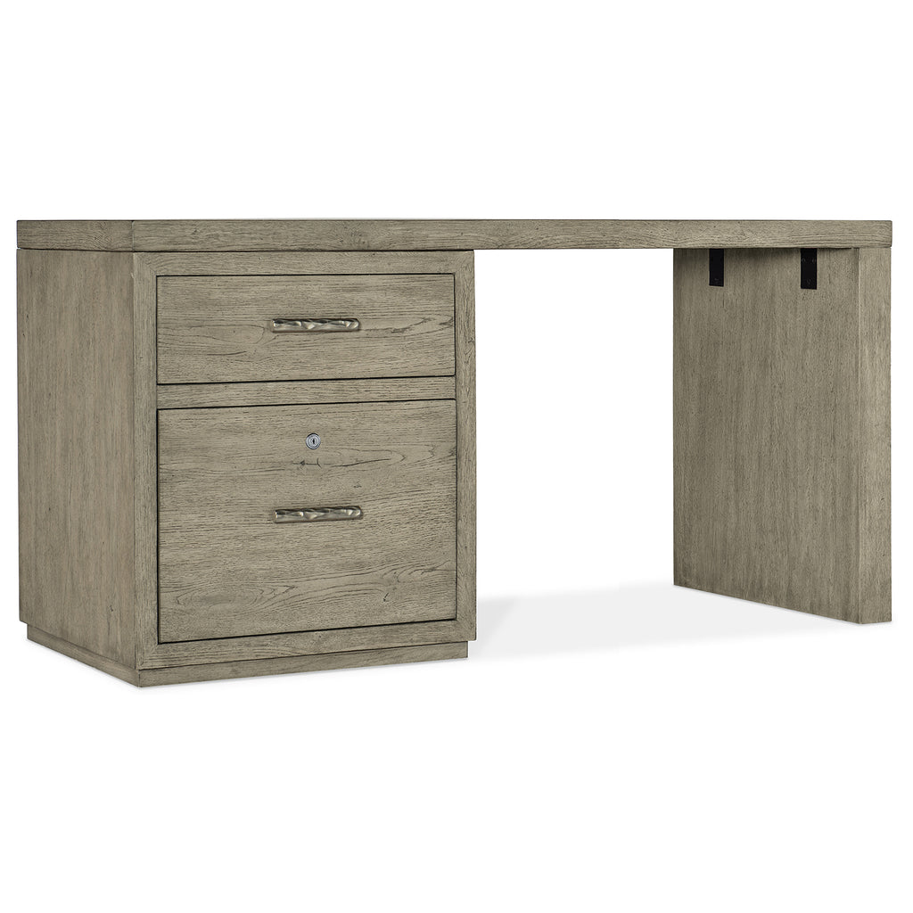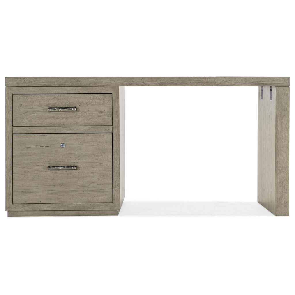 Capturing the essence of nature’s organic color palette on a clean-lined, simple silhouette, the Linville Falls Desk is crafted of Oak Veneers with a soft smoked gray Mink finish. The top is flanked on one side by a leg end panel and on the other by a small file with a top utility drawer and a lower locking file drawer with pendaflex filing system. The desk is fully finished on the back so it can be floated in a room.