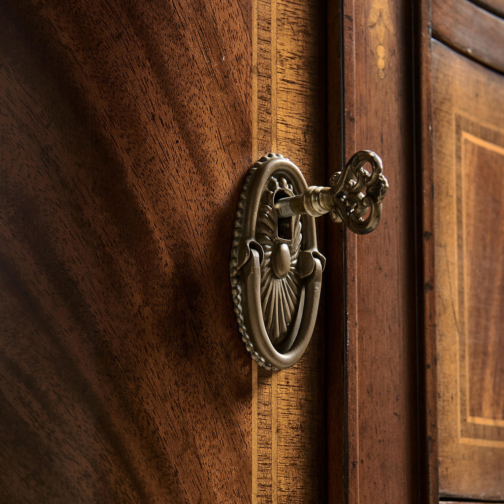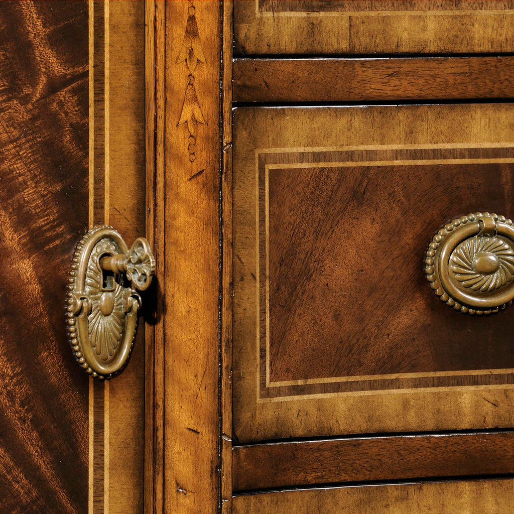 • Crotch mahogany veneered door fronts with adjustable shelf behind each