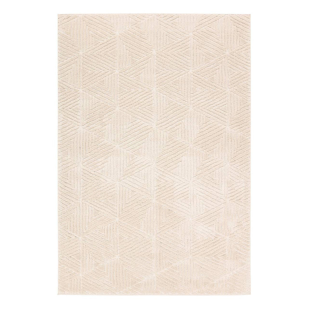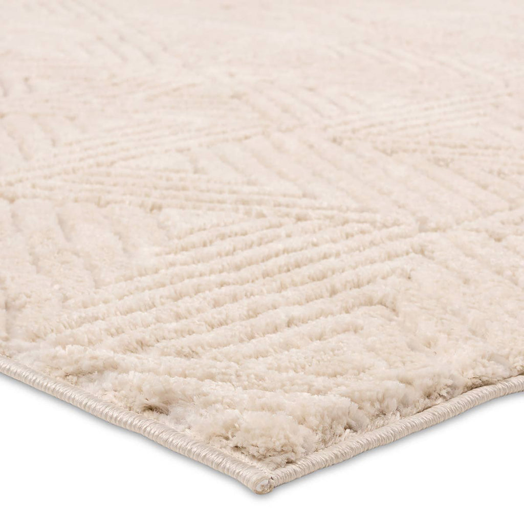 Modern geometrics and a lustrous sheen define the Jaipur Living Calix Collection by Nikki Chu. The soft, plush pile features high and low areas for added texture that delights underfoot. The Ziazan design showcases a cream, geometric, triangle pattern. Polypropylene and polyester blend provides natural stain resistance and low maintenance care. This rug best suits medium-traffic spaces of the home, such as living rooms, bedrooms, and dining rooms.