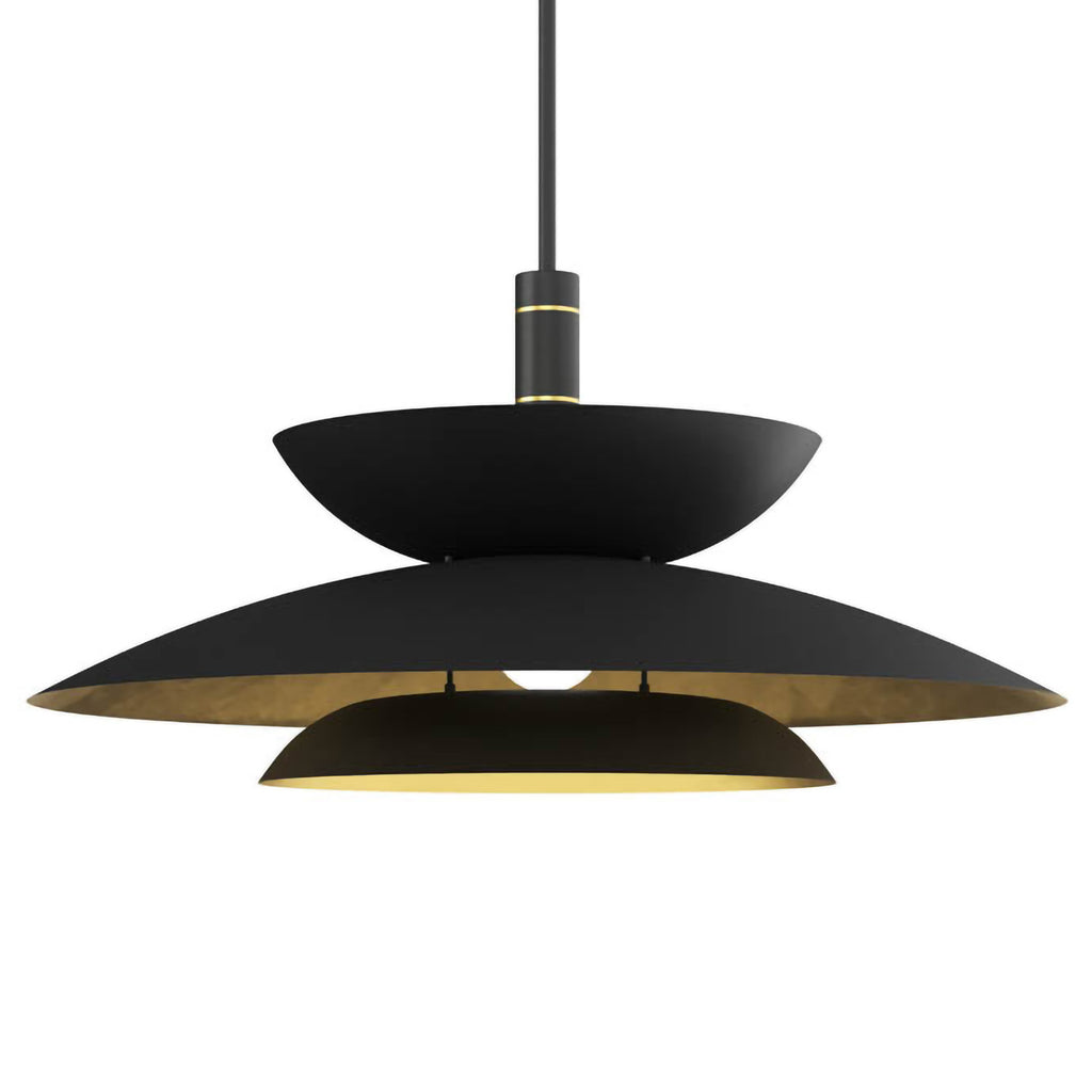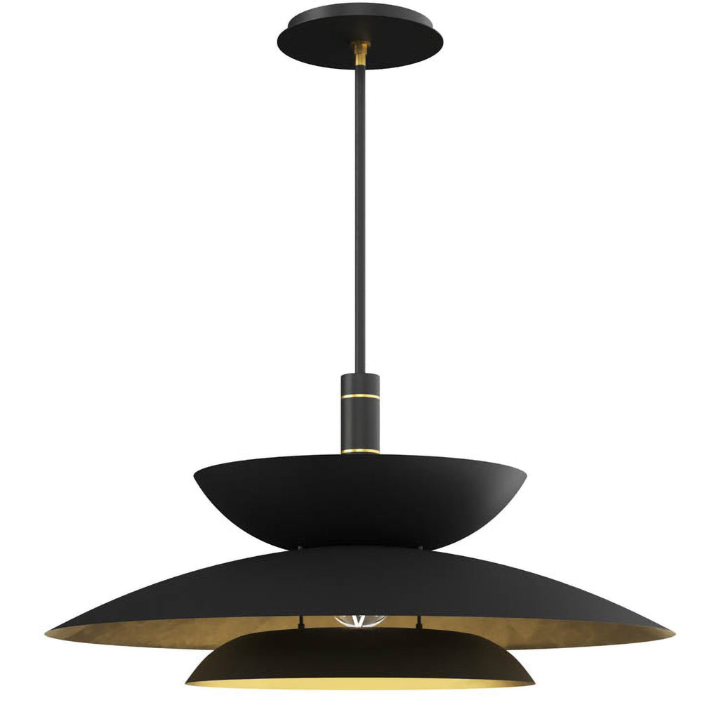 Make any space shine with this pendant light that is inspired by global travels with a moden twist. Features a tiered dome design that has a matte black aluminum exterior and a brass iron interior.